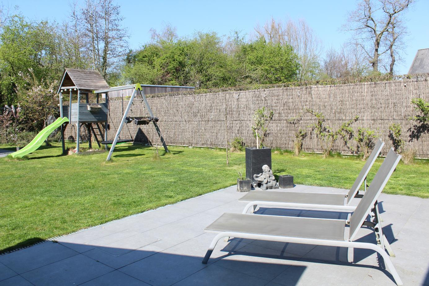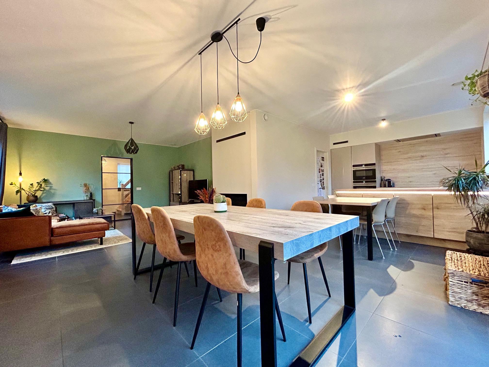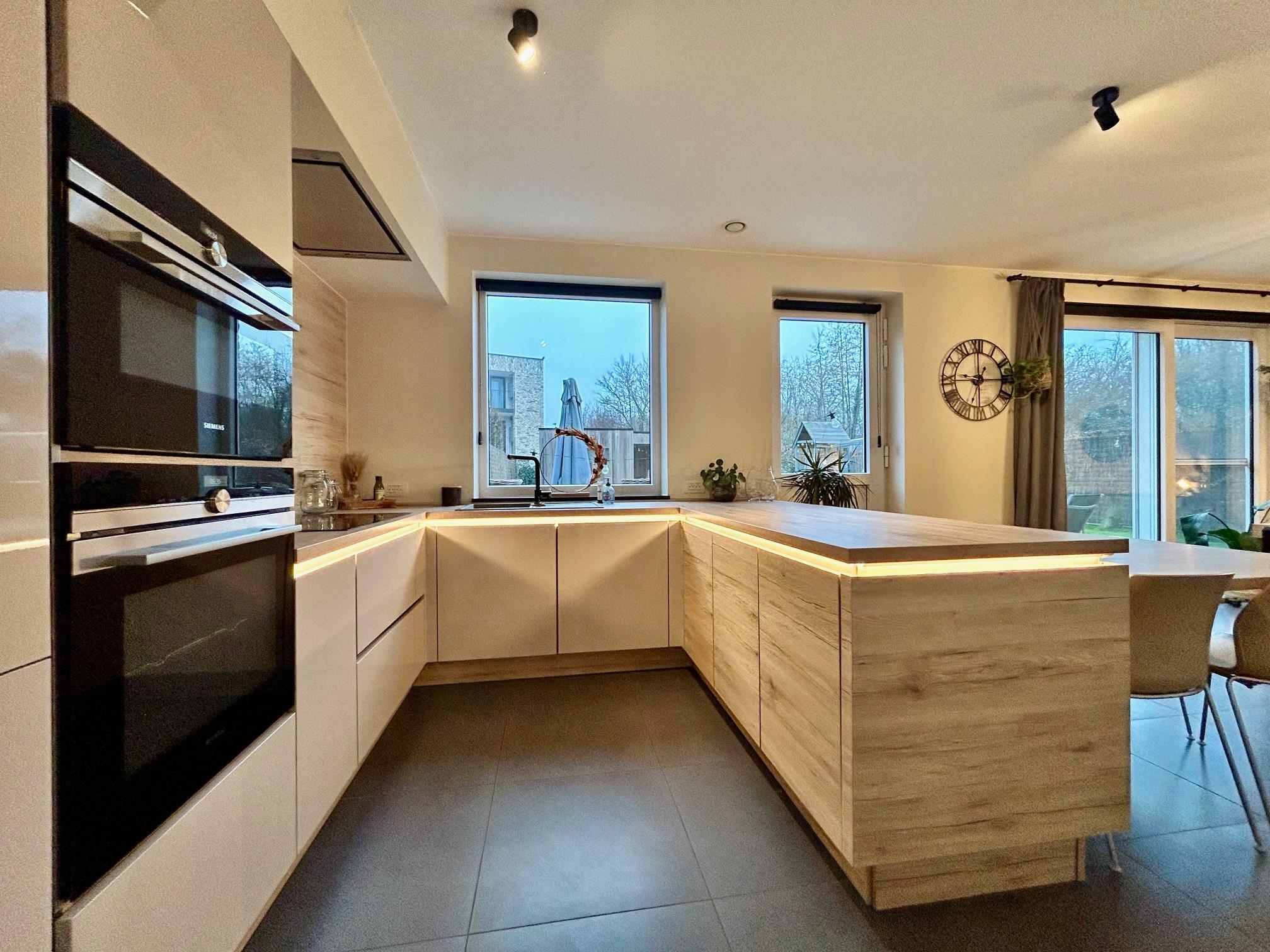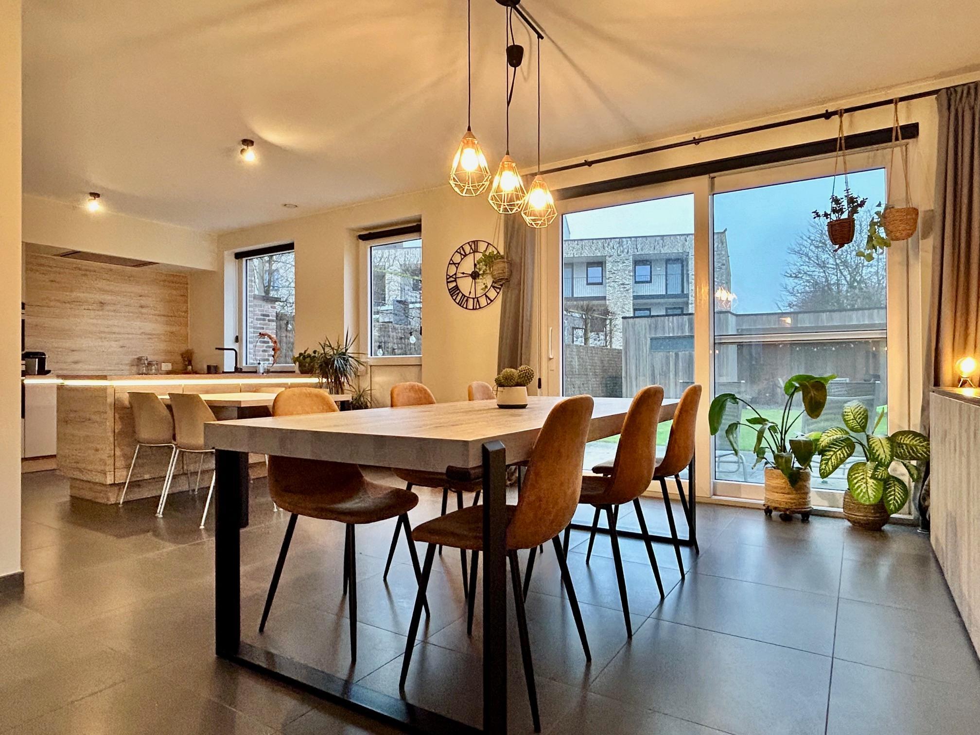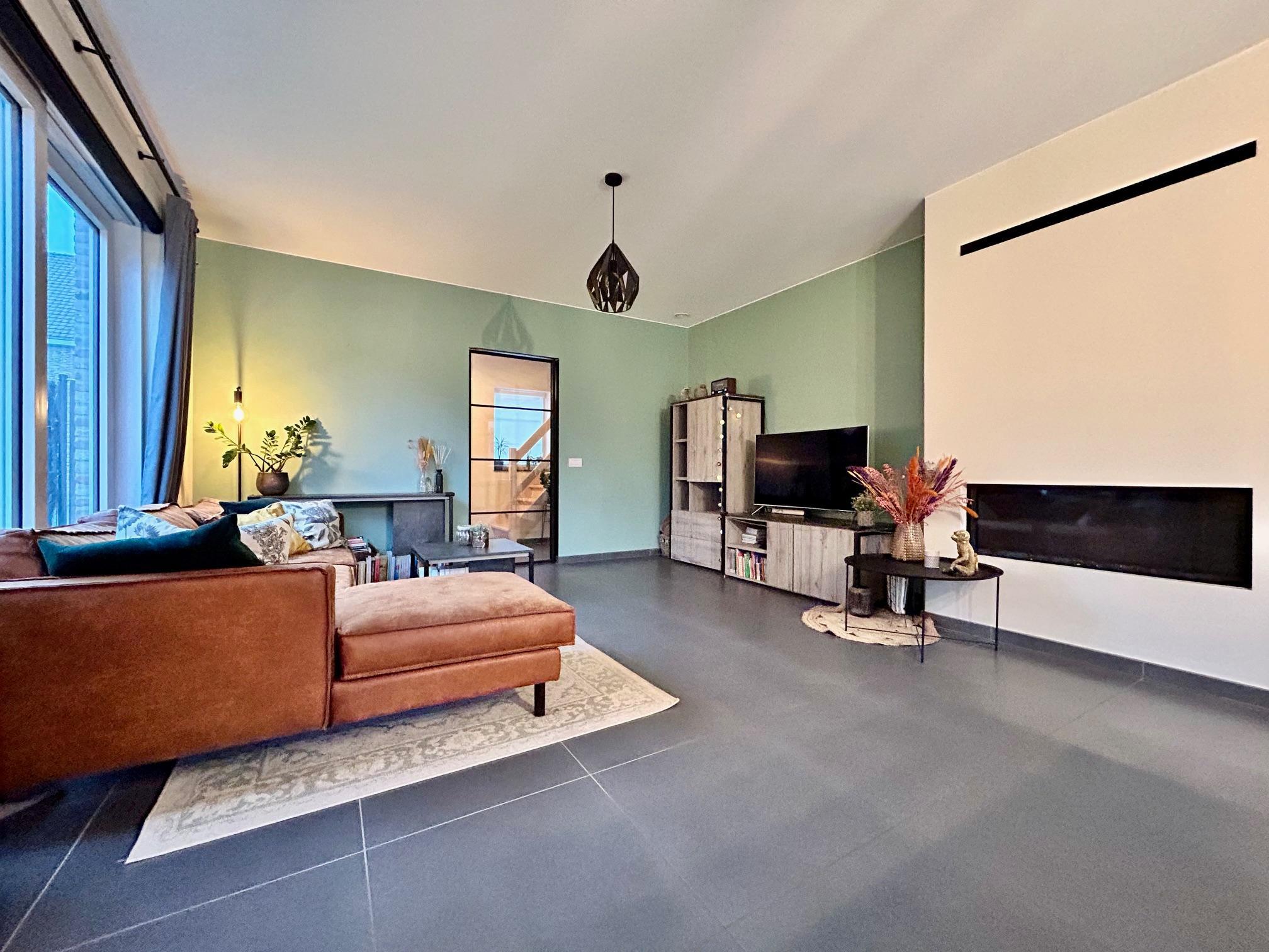 Recente energiezuinige woning (bwj 2017) op 440 m² in een rustige en kindvriendelijke omgeving, bestaande uit een inkom met afzonderlijk toilet en vestiaire, lichtrijke leefruimte met gashaard, een volledig uitgeruste open keuken met eetplaats, ruime garage met was/bergplaats en een zuidwest gerichte tuin met aangelegde terrassen + tuinhuis met overkapping/lounge. Op het verdiep zijn 3 volwaardige slaapkamers, afzonderlijk toilet, badkamer (inloopdouche, losstaand bad & dubbele lavabo) en een trapluik naar de geïsoleerde zolder. Kwalitatieve afwerking!