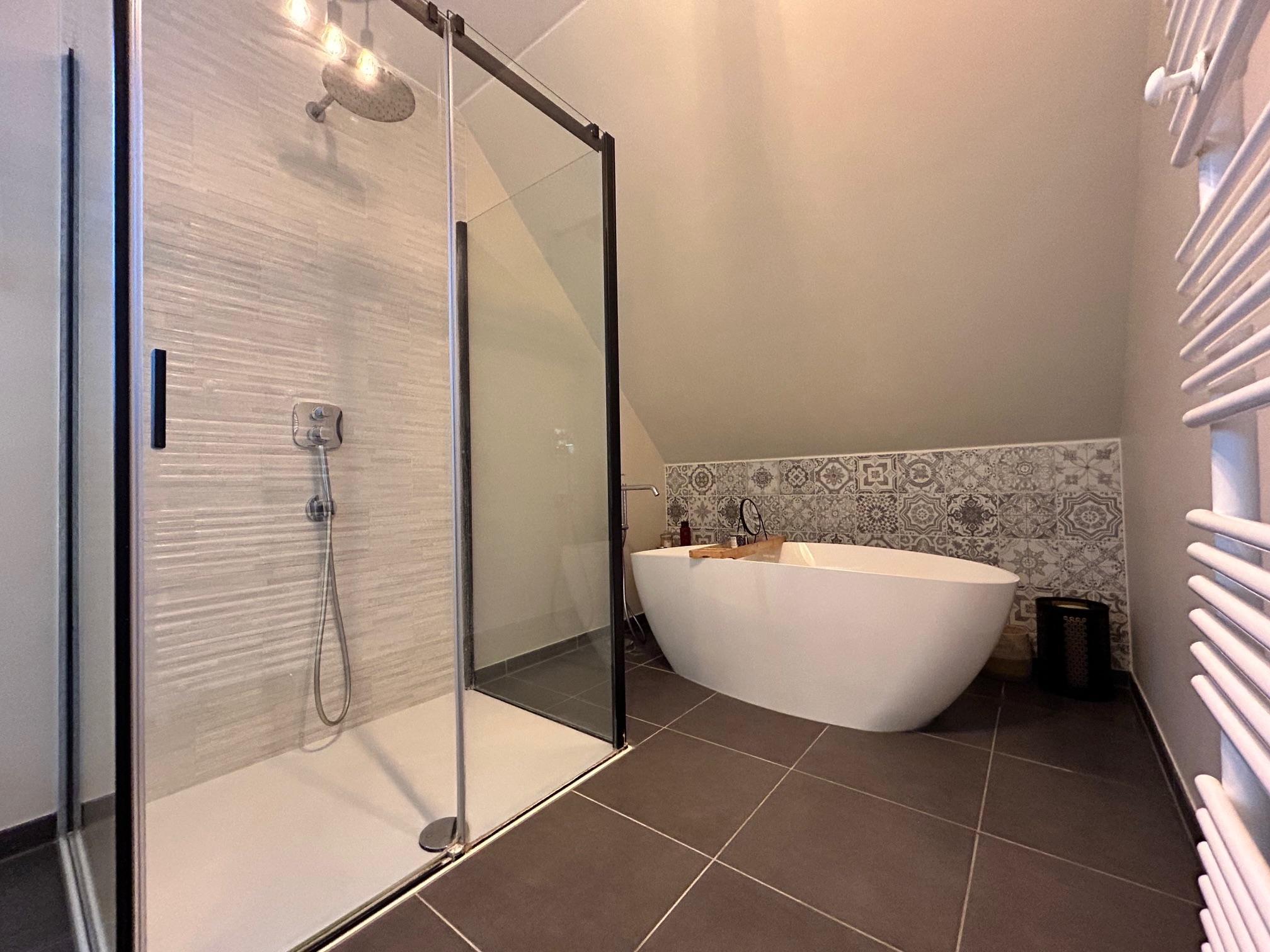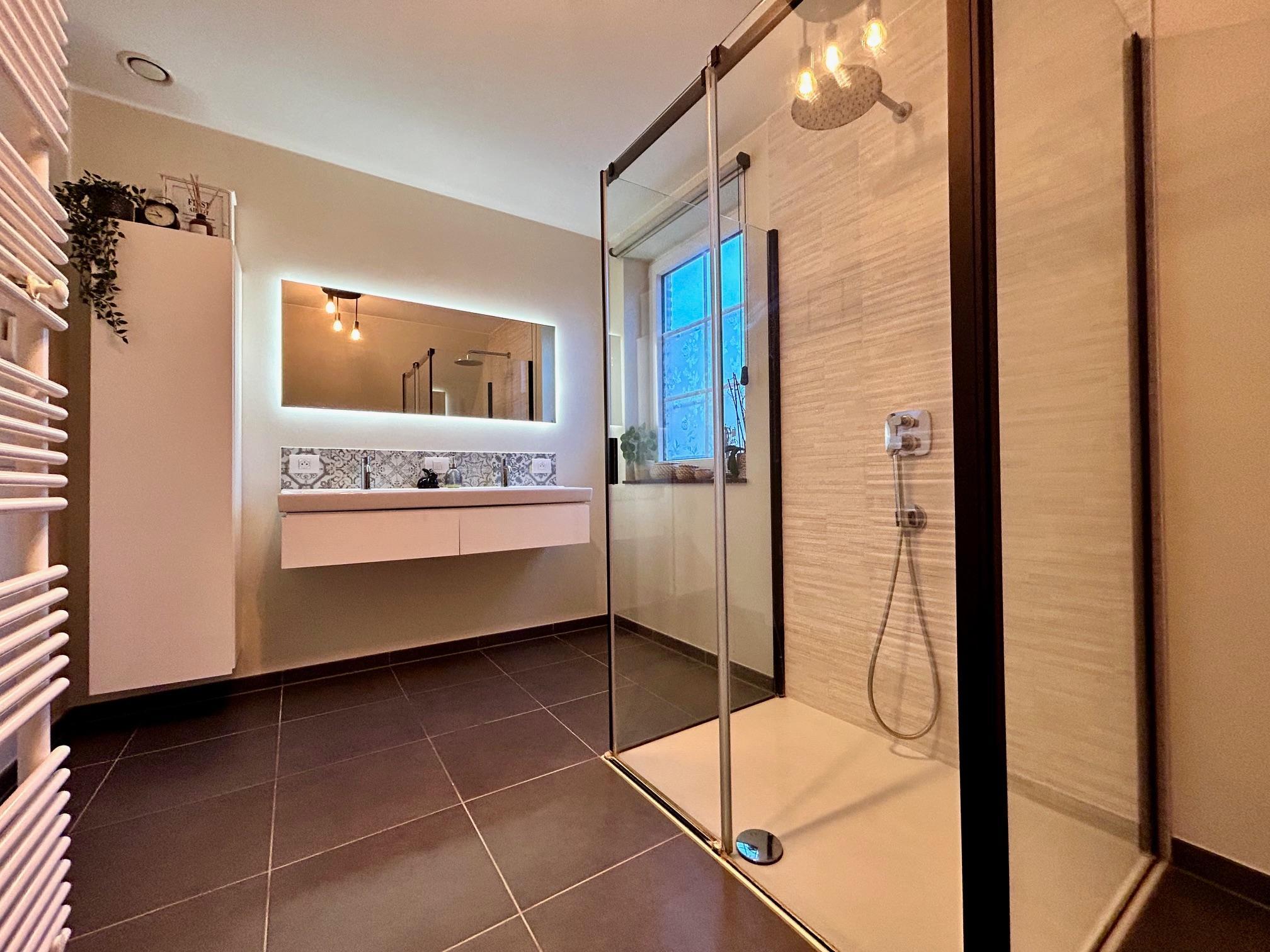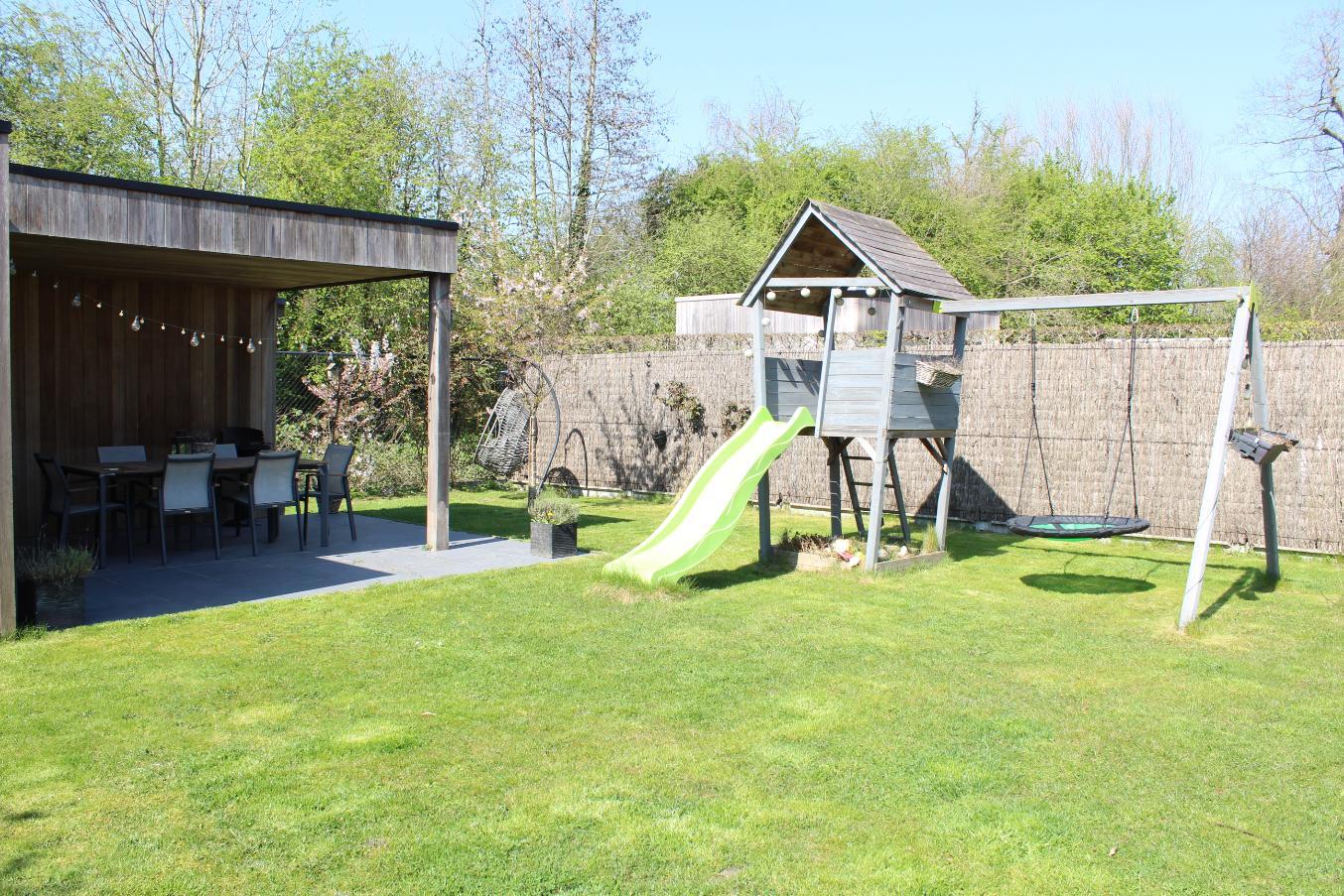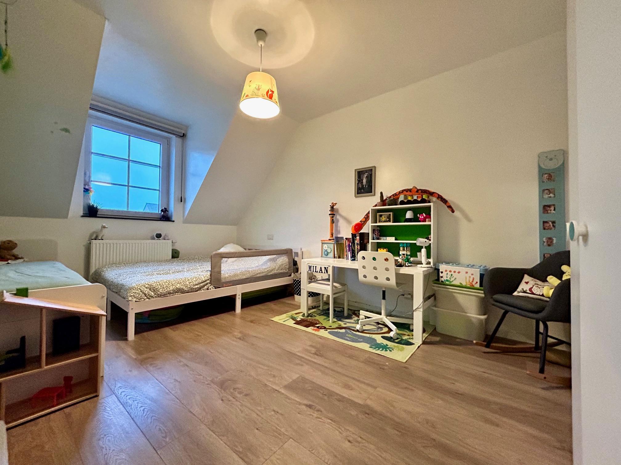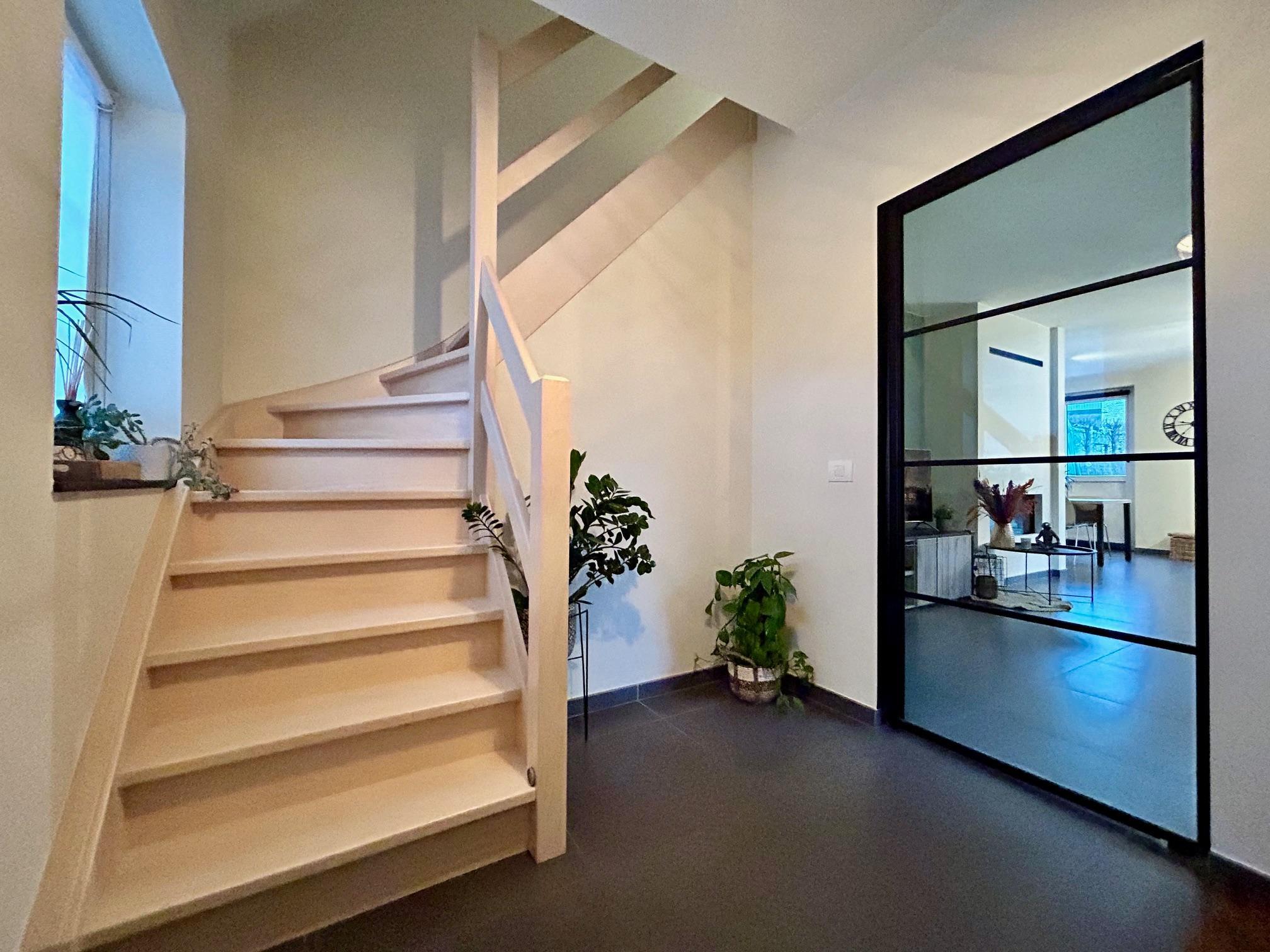Recente energiezuinige woning (bwj 2017) op 440 m² in een rustige en kindvriendelijke omgeving, bestaande uit een inkom met afzonderlijk toilet en vestiaire, lichtrijke leefruimte met gashaard, een volledig uitgeruste open keuken met eetplaats, ruime garage met was/bergplaats en een zuidwest gerichte tuin met aangelegde terrassen + tuinhuis met overkapping/lounge. Op het verdiep zijn 3 volwaardige slaapkamers, afzonderlijk toilet, badkamer (inloopdouche, losstaand bad & dubbele lavabo) en een trapluik naar de geïsoleerde zolder. Kwalitatieve afwerking!