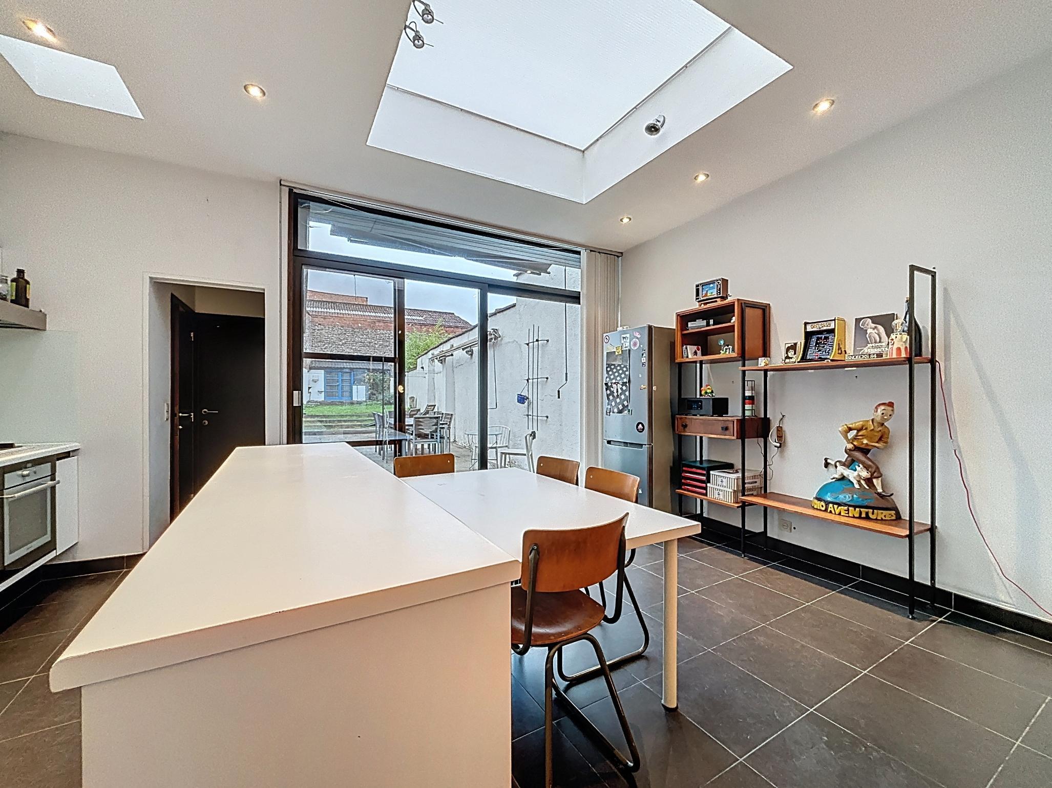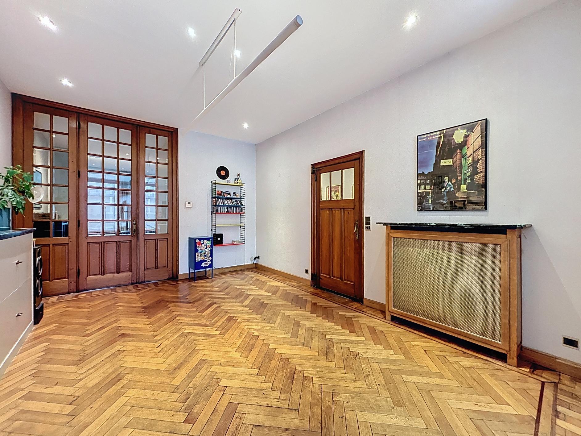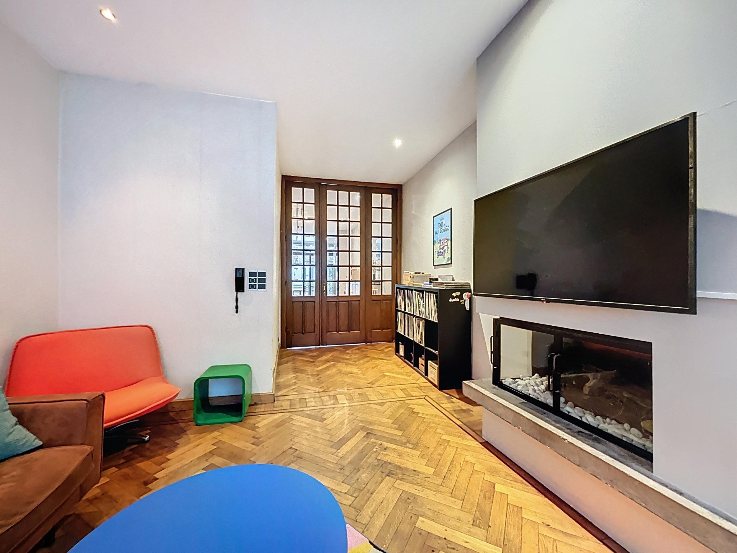 Stap binnen in deze karaktervolle en energiezuinige rijwoning waar authenticiteit en warmte centraal staan. Deze woning ademt sfeer en charme, met behoud van originele elementen die zorgen voor een unieke uitstraling.De ruime leefruimte met apart zit- en eetgedeelte straalt huiselijkheid uit, dankzij de hoge plafonds, houten vloeren en doordachte indeling.De open keuken met zicht op de tuin vormt een gezellige plek waar koken en samenzijn hand in hand gaan.Verder vindt u op het gelijkvloers een gastentoilet, een praktische berging met wasruimte en een ruime kelder.