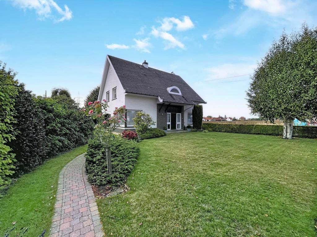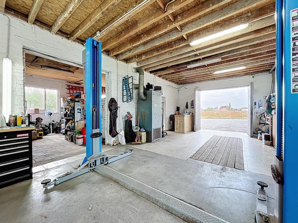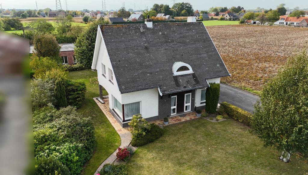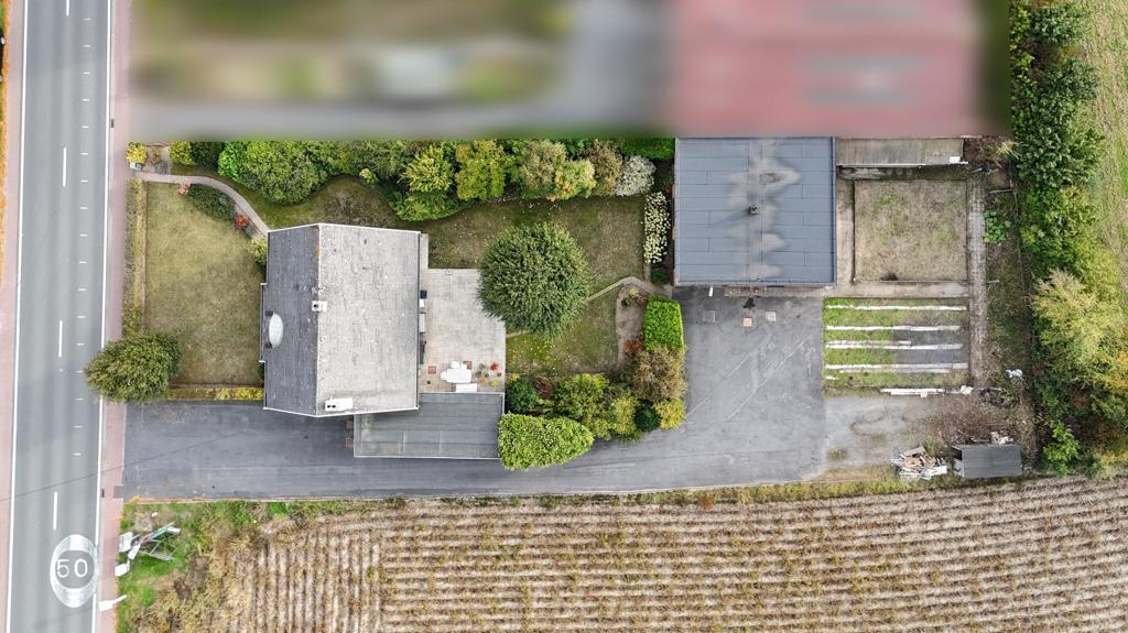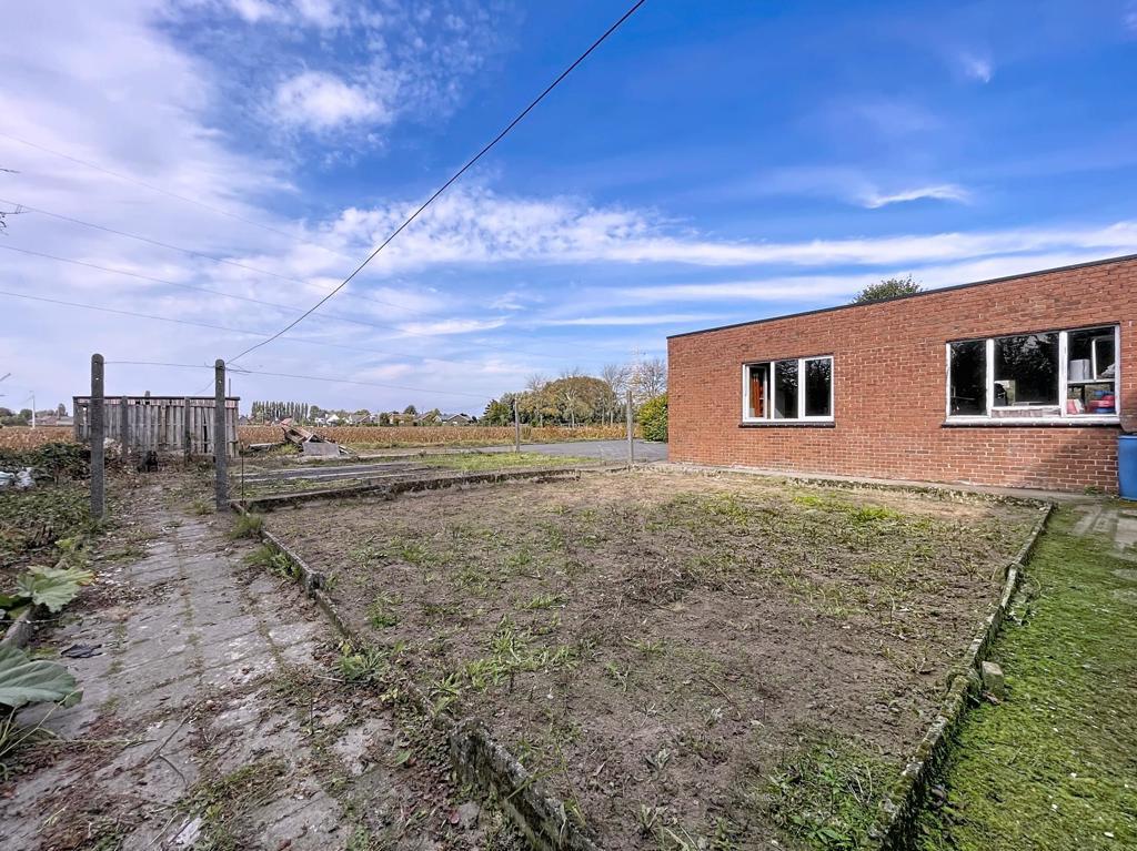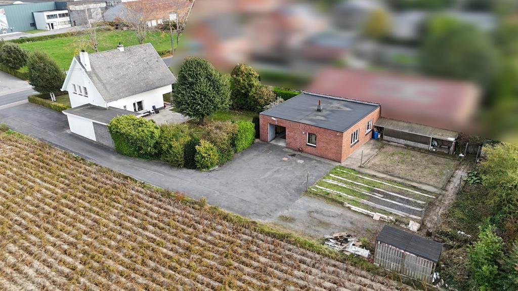 Op te frissen alleenstaande woning op een perceel van 1610m², bestaande uit een inkomhal met afzonderlijk toilet, bureel, ruime lichtrijke leefruimte met eet- en zithoek, ingerichte keuken met eetplaats, droge kelder, garage en een private tuin met aangelegde terrassen. Achteraan bevindt zich een magazijn van ±110m², vlot bereikbaar via de aangelegde oprit.