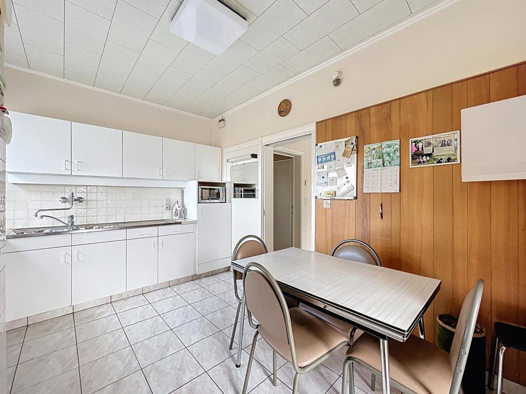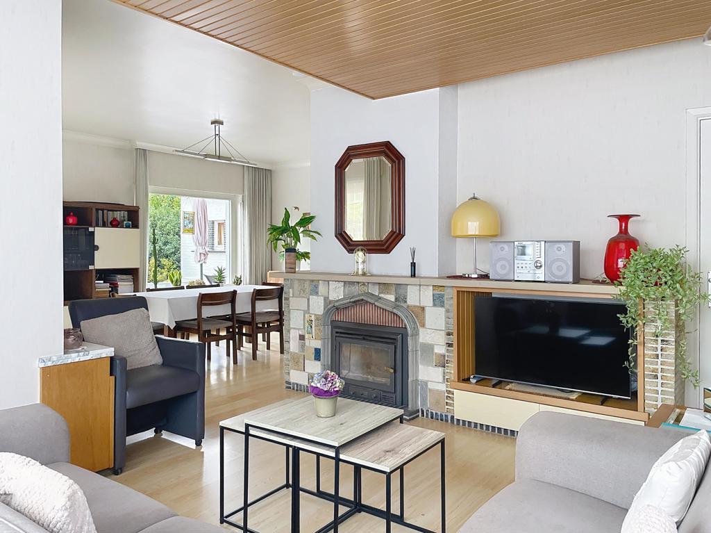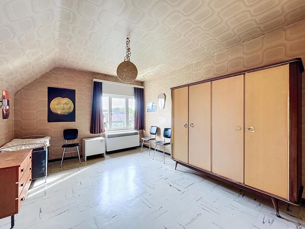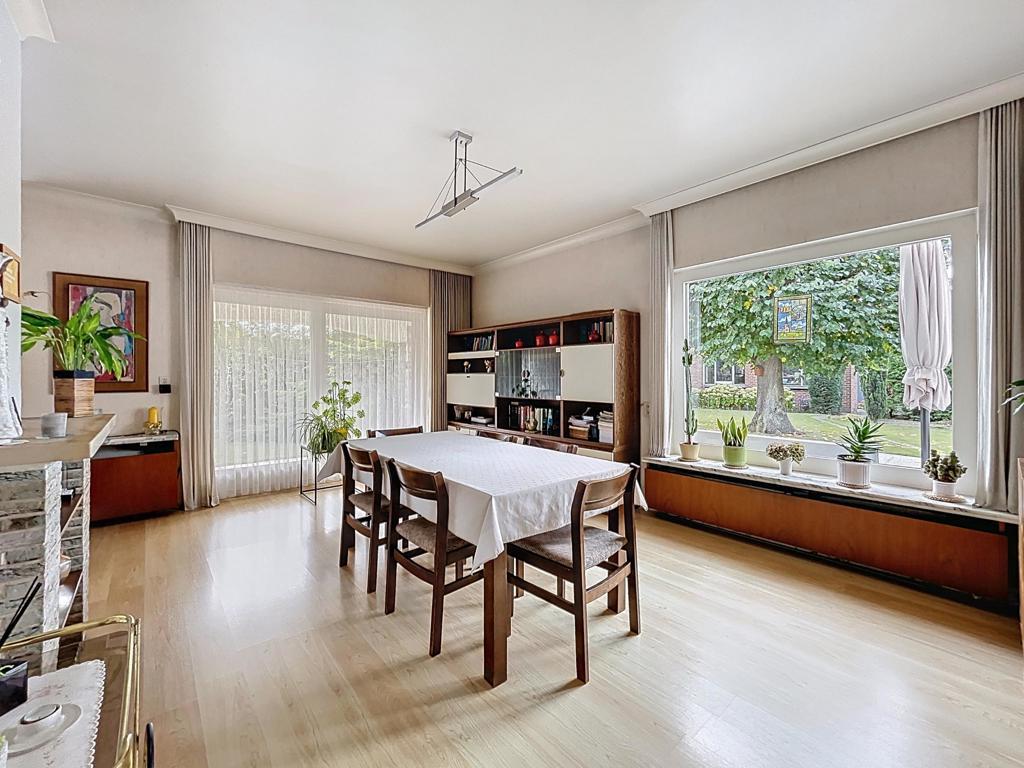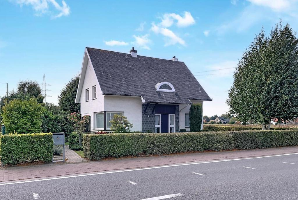 Op te frissen alleenstaande woning op een perceel van 1610m², bestaande uit een inkomhal met afzonderlijk toilet, bureel, ruime lichtrijke leefruimte met eet- en zithoek, ingerichte keuken met eetplaats, droge kelder, garage en een private tuin met aangelegde terrassen. Achteraan bevindt zich een magazijn van ±110m², vlot bereikbaar via de aangelegde oprit.