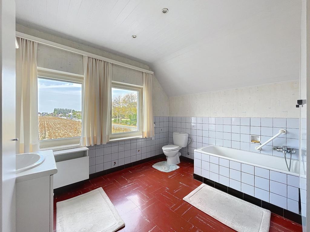 Op het verdiep bevinden zich drie volwaardige slaapkamers, een badkamer (ligbad, toilet en lavabomeubel) en een trapluik naar de bergzolder.