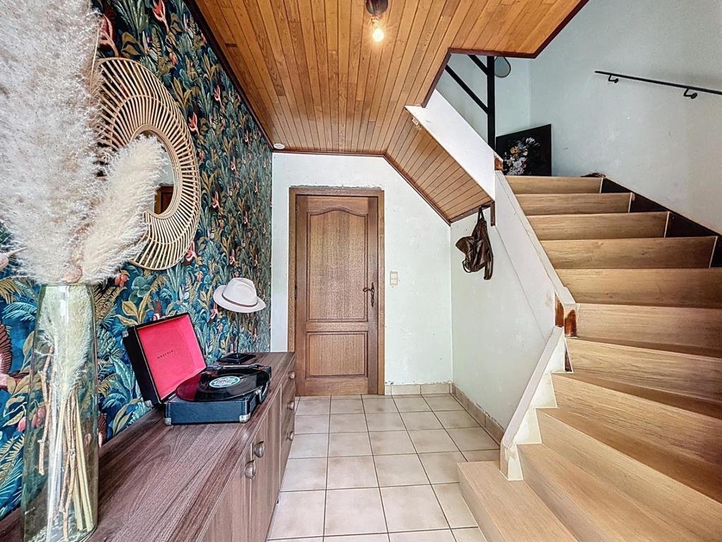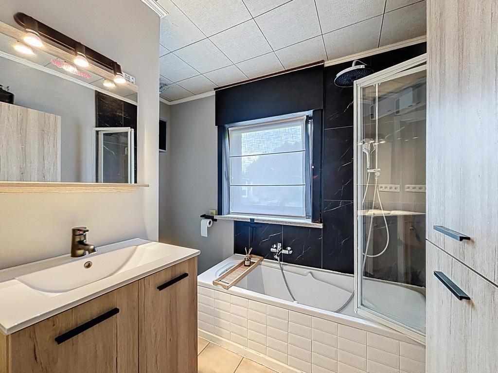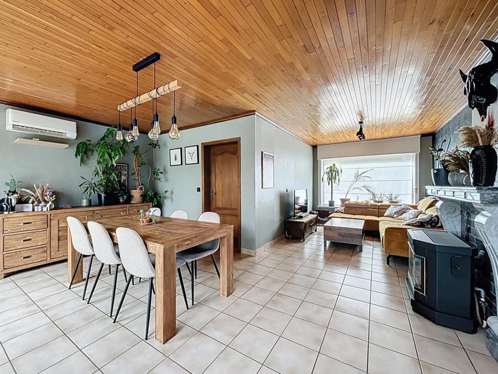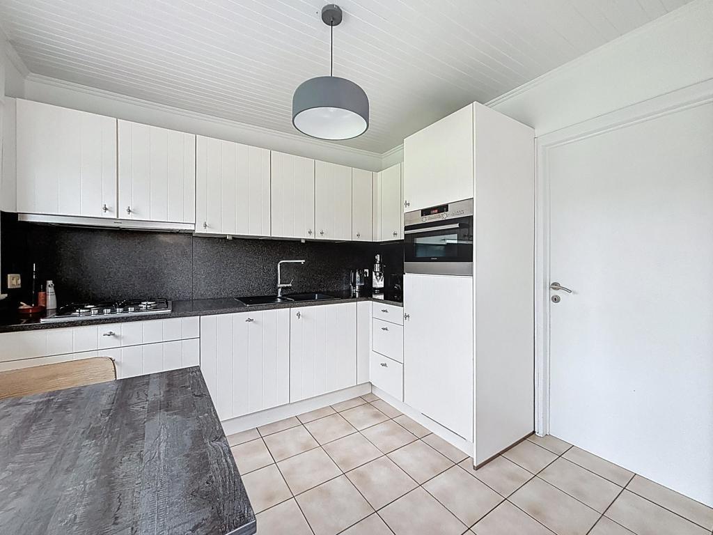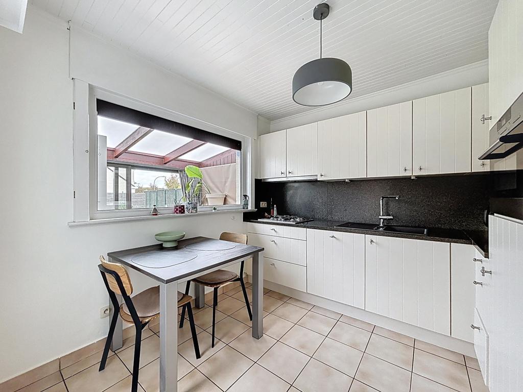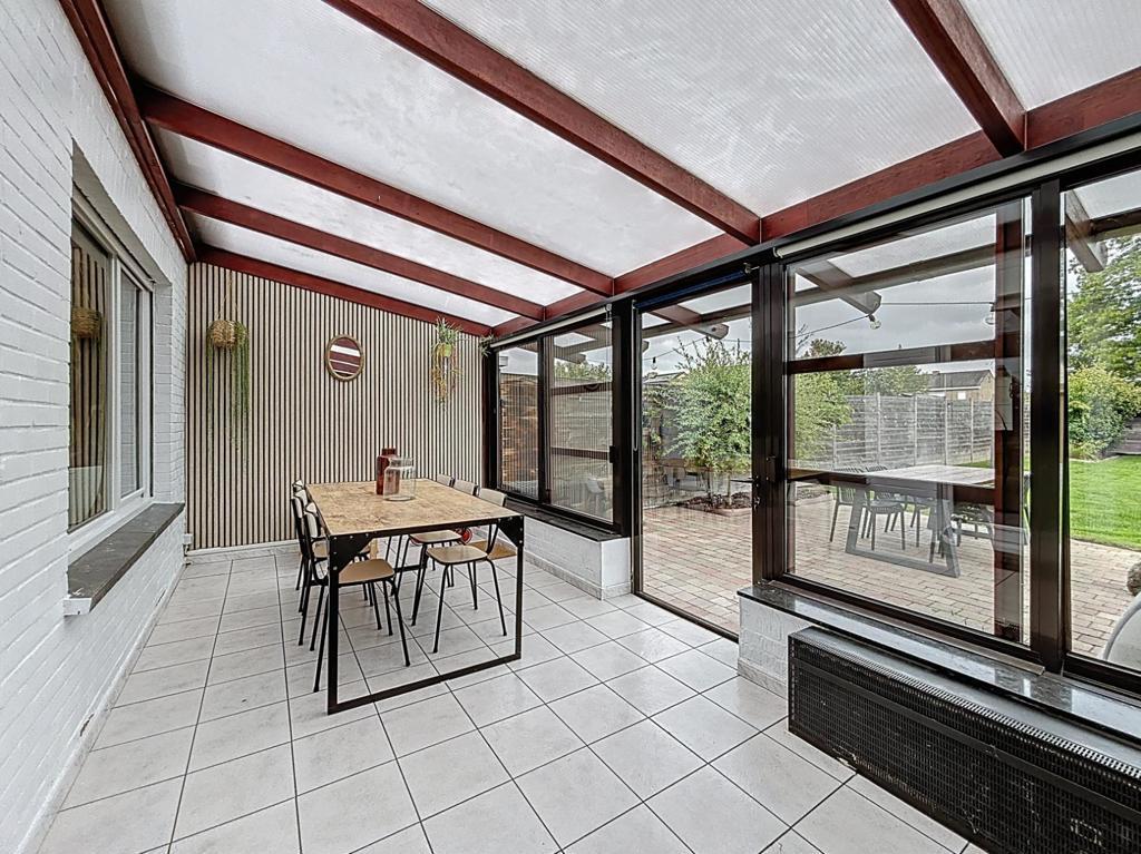 De inkomhal leidt naar de gezellige leefruimte met zit- en eethoek, aansluitend bevindt zich de volledig geïnstalleerde keuken met alle nodige toestellen. De lichtrijke veranda vormt een mooie overgang naar de tuin en biedt extra leefruimte met zicht op het groen.