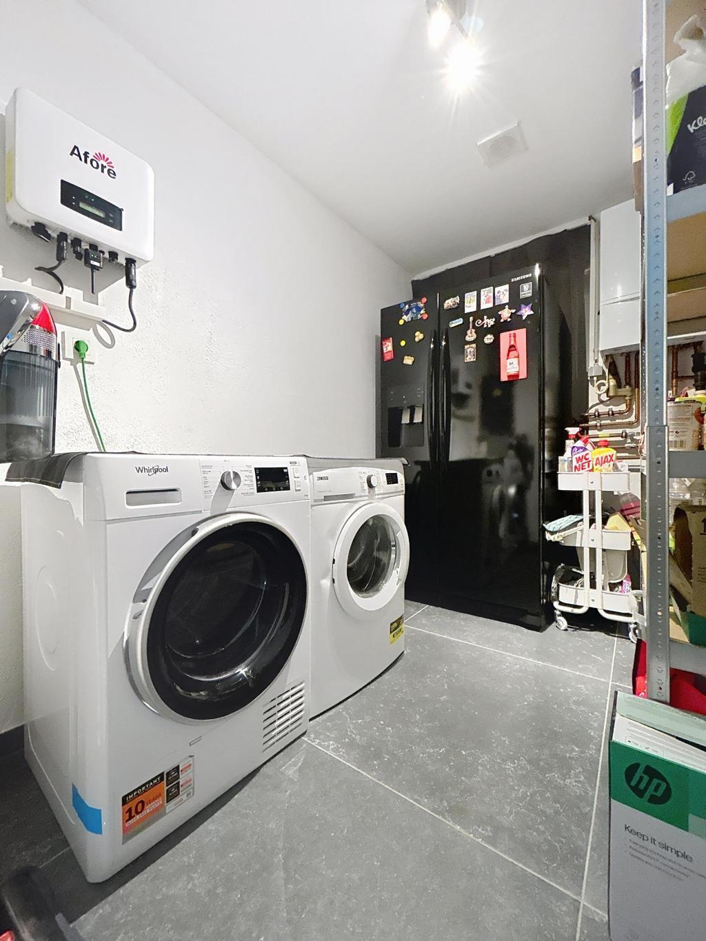 Verder zijn er twee ruime slaapkamers en een aangelegde tuin met kunstgras, terras en een poortje dat toegang biedt tot de garage en een achterliggende tuin.