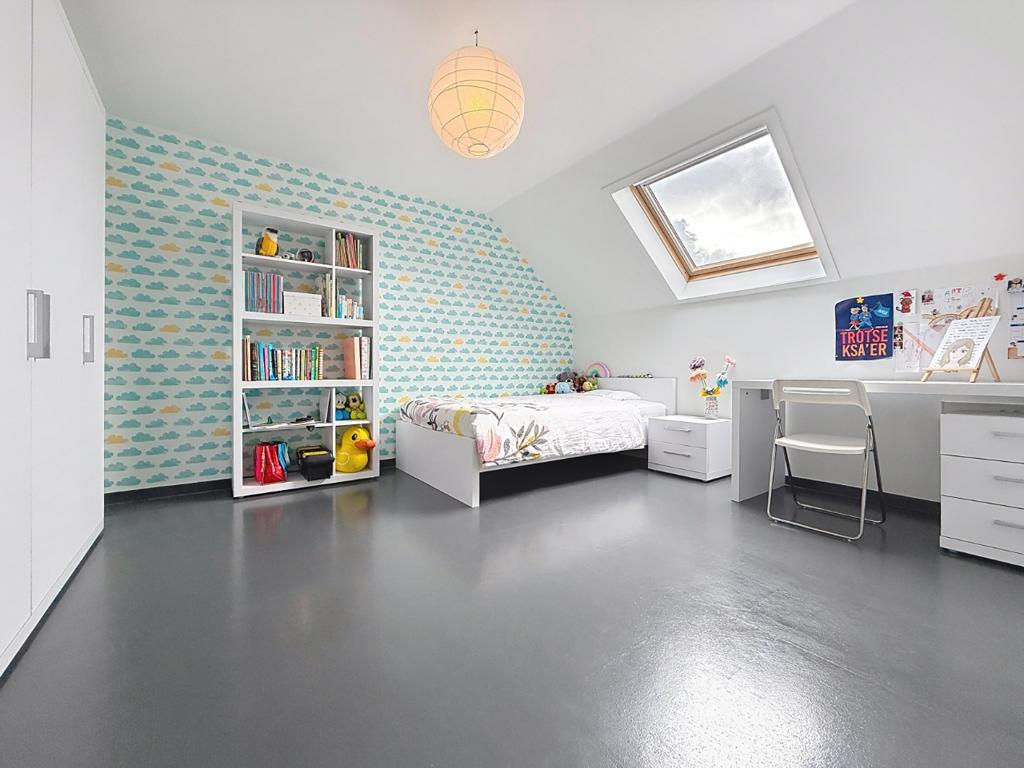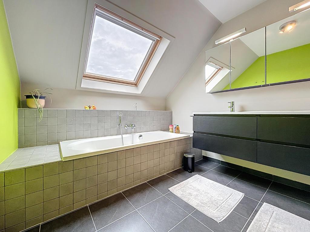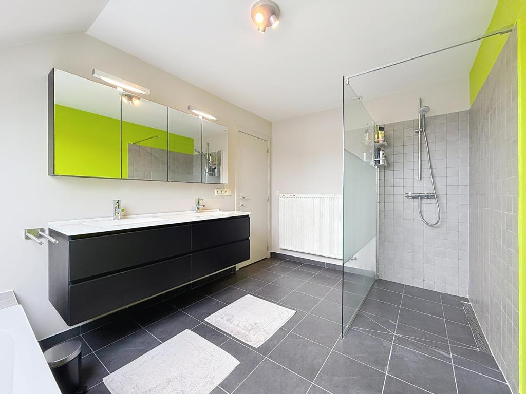 Op de eerste verdieping bevinden zich drie slaapkamers (waarvan de master bedroom met dressing), een nachthal met afzonderlijk toilet en een ingerichte badkamer met inloopdouche, ligbad en dubbel lavabomeubel.