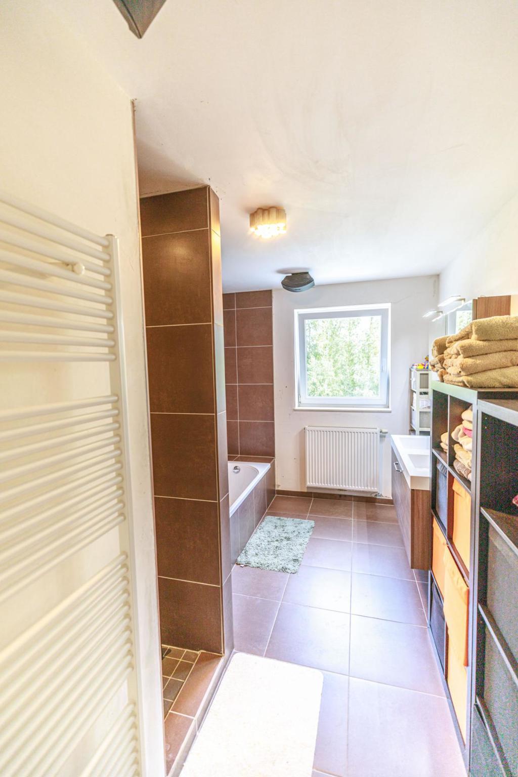 Op de verdieping bevinden zich drie volwaardige slaapkamers, een nachthal met afzonderlijk toilet, een ingerichte badkamer (inloopdouche, ligbad en dubbele wastafel) en een trapluik naar de geïsoleerde bergzolder.
