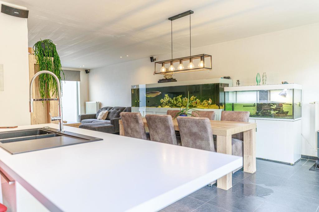 Instapklare halfopen bebouwing (Grondopp.: 336m²) op een interessante locatie, bestaande uit een inkomhal met gastentoilet, lichtrijke leefruimte met eet- en zithoek, volledig uitgeruste open keuken met eiland, praktische was-/bergruimte en een aangelegde, zuidoostgerichte tuin omgeven door groen, met een ruim terras en uitweg via een poortje.