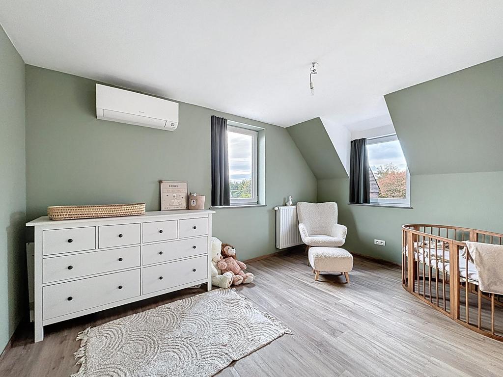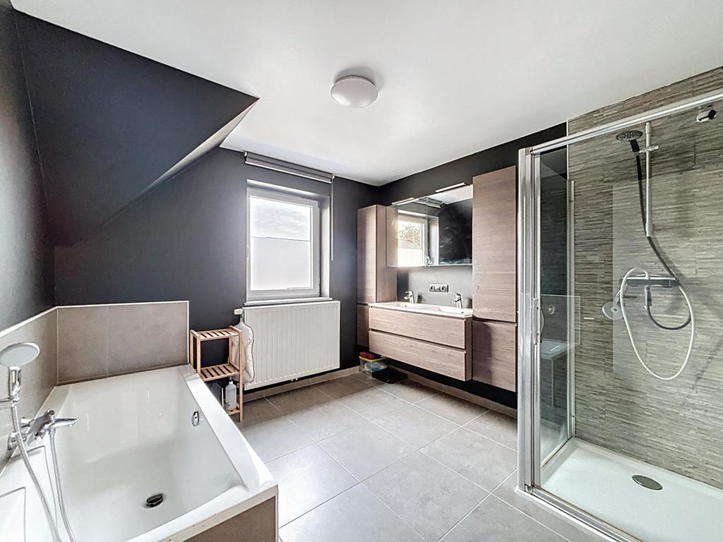 Op de eerste verdieping bevinden zich drie volwaardige slaapkamers, een badkamer met bad, douche en dubbele lavabo, en een apart toilet.