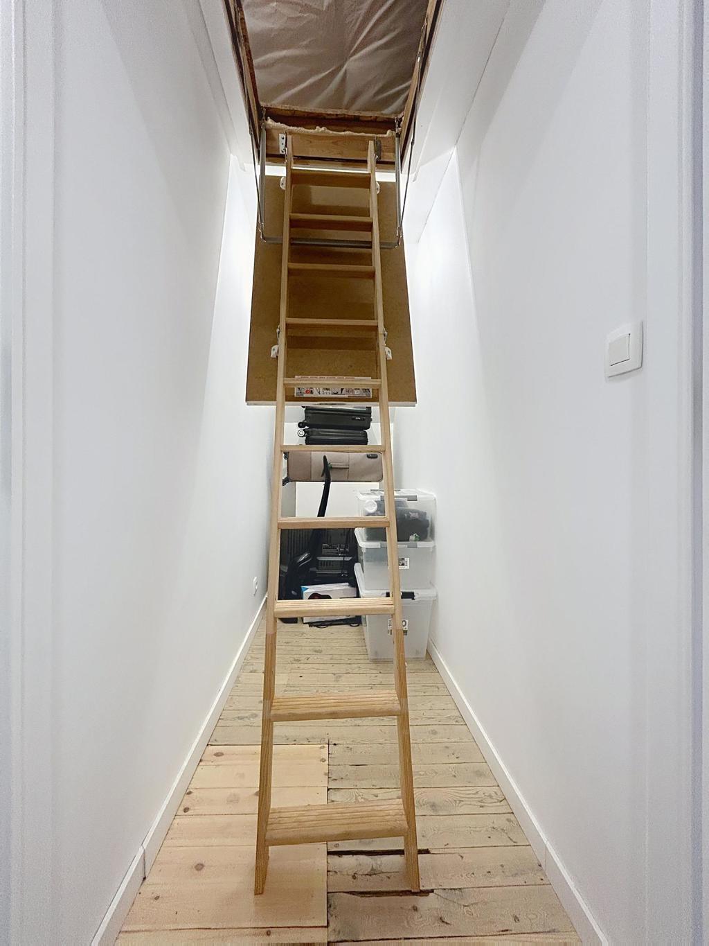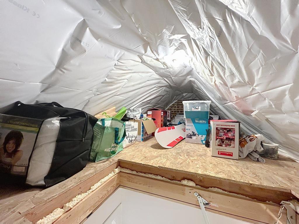 Op het verdiep zijn twee volwaardige slaapkamers, een praktische berging en een trapluik naar de geïsoleerde bergzolder.