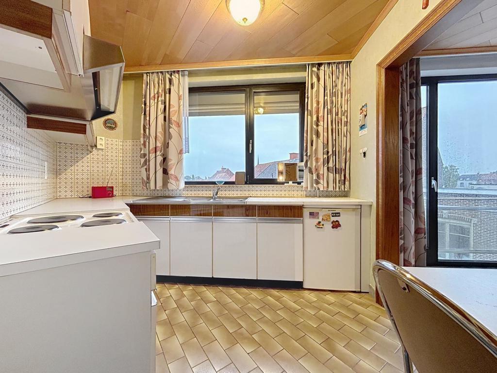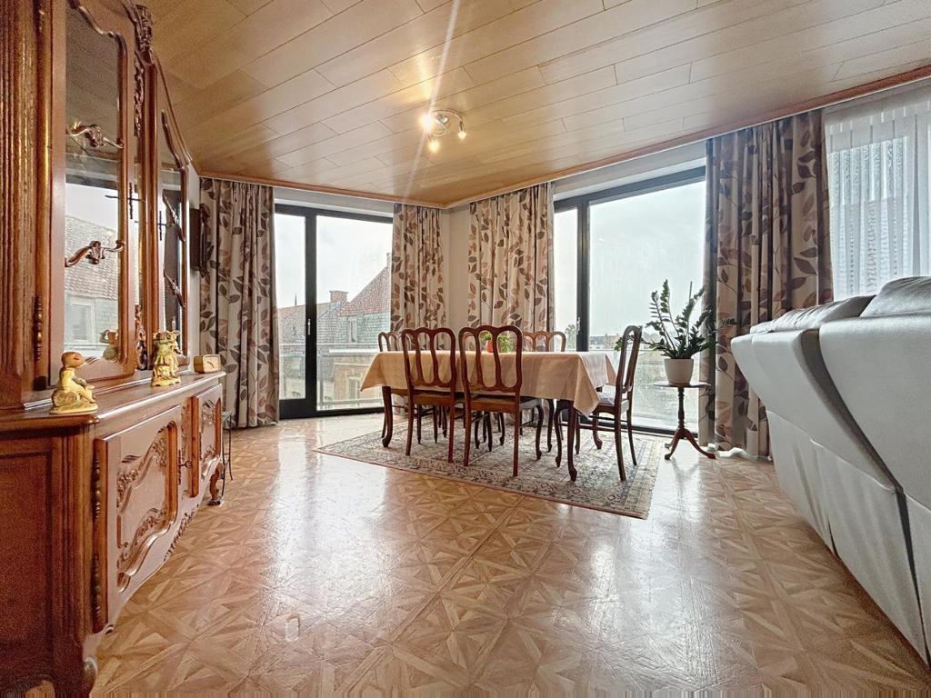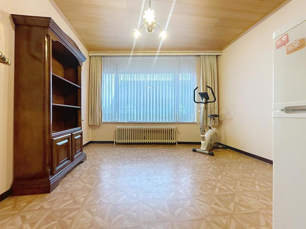 Goed onderhouden appartement op wandelafstand van allerlei faciliteiten, bestaande uit een inkomhal met vestiaire en afzonderlijk toilet, een lichtrijke leefruimte met eet- en zithoek en open zicht, een uitgeruste keuken met aanpalende berging, twee volwaardige slaapkamers, een ingerichte badkamer (ligbad, lavabo en aansluiting voor wasmachine), een klein terras en een garage met sectionale poort die kan worden bijgekocht voor €20.000.