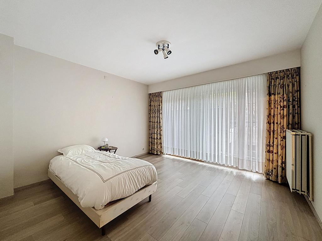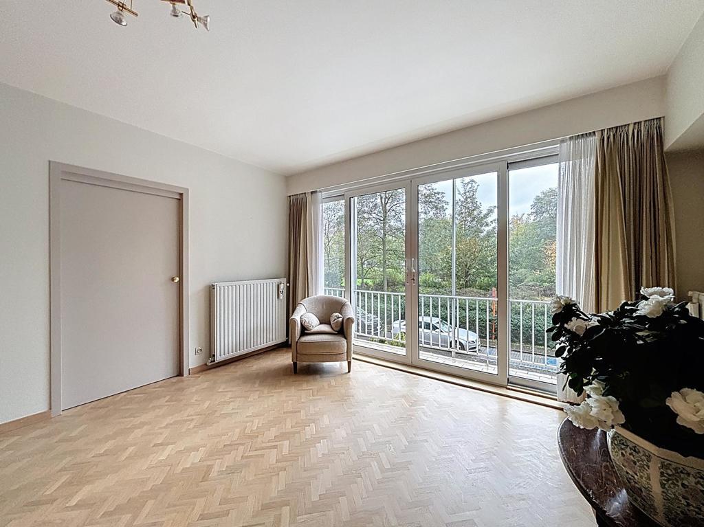 Het appartement bevindt zich op de eerste verdieping van een verzorgd gebouw met lift en biedt een lichtrijke leefruimte met zit- en eethoek, afgewerkt met massief parket.