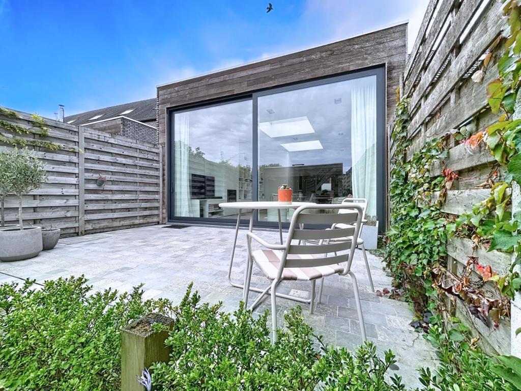 Energiezuinige woning op wandelafstand van allerlei voorzieningen. De woning omvat een ruime inkomhal met vestiaire en afzonderlijk toilet, een uitgeruste keuken met bergruimte en een gezellige, lichtrijke leefruimte met eet- en zithoek. Achteraan bevindt zich een grote, onderhoudsvriendelijke tuin met zonnige terrassen (deels overdekt) en een praktische tuinberging.