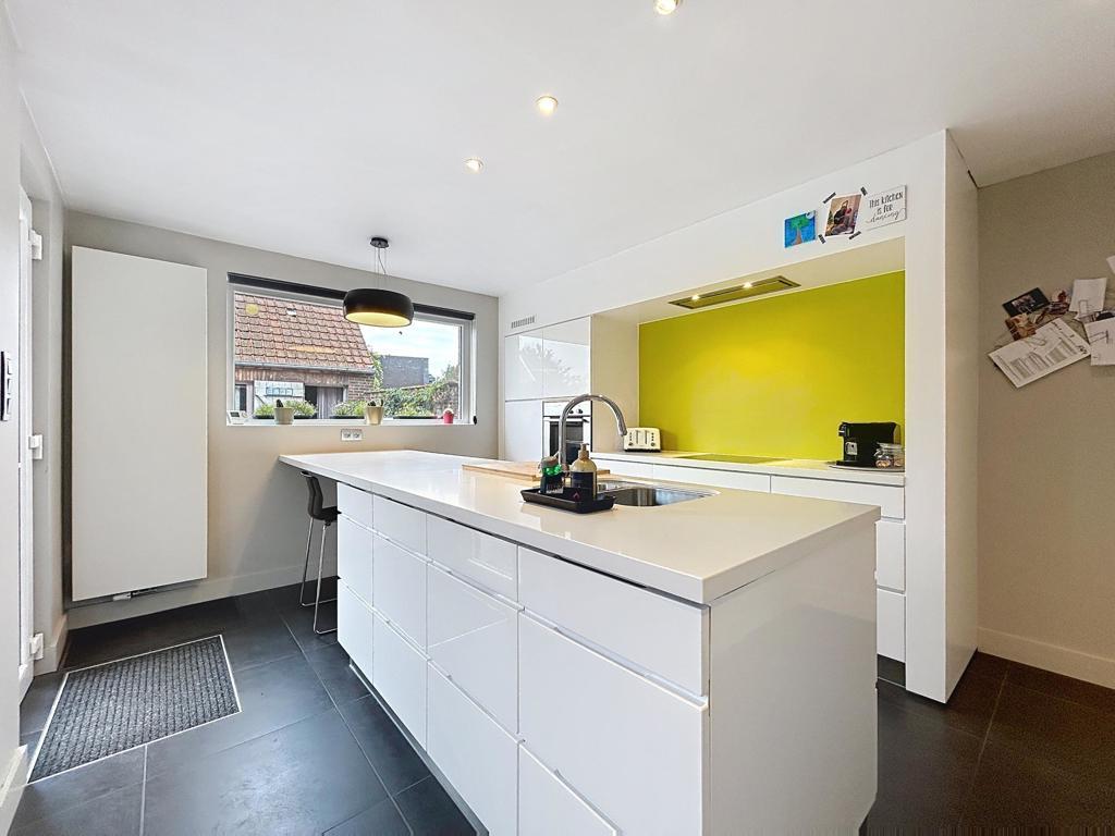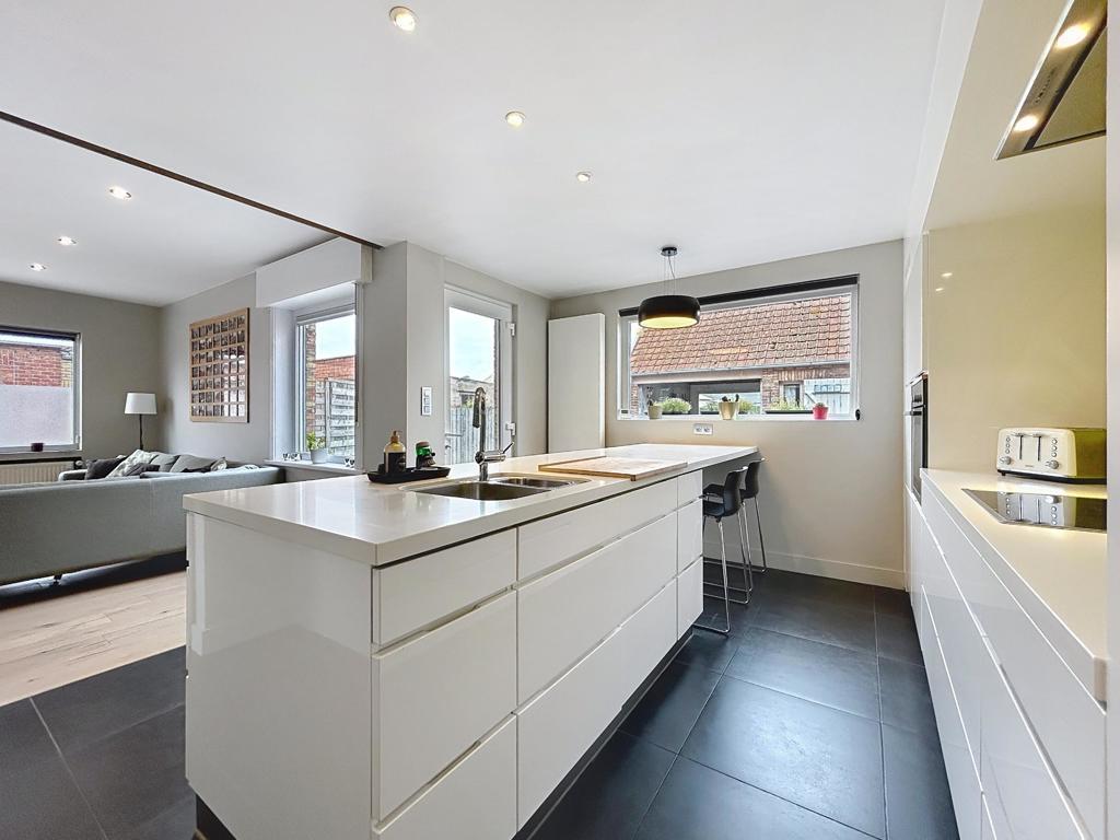Instapklare woning op een centrale locatie, bestaande uit een inkomhal met afzonderlijk toilet, bureel, lichtrijke leefruimte met eet- en zithoek, volledig uitgeruste keuken met eiland en een praktische berging. (Bew. Opp.: 193m²) De grote, zonnige tuin met aangelegd terras (deels overdekt), gezellige mancave en losstaande garage zorgt voor optimaal wooncomfort.