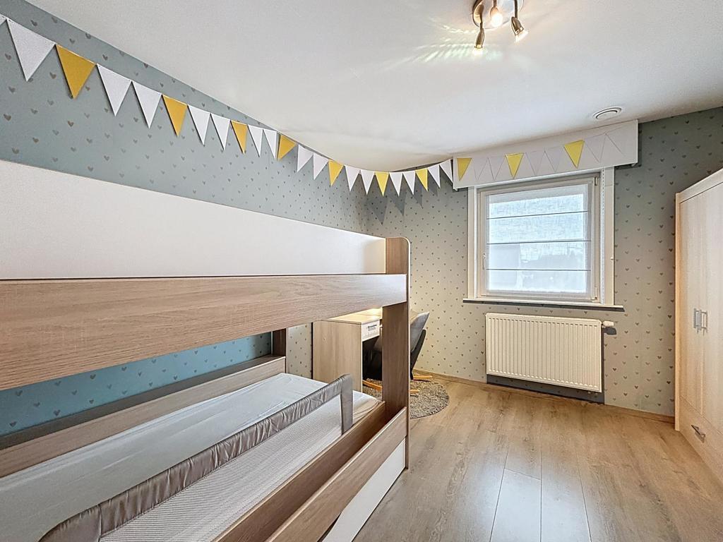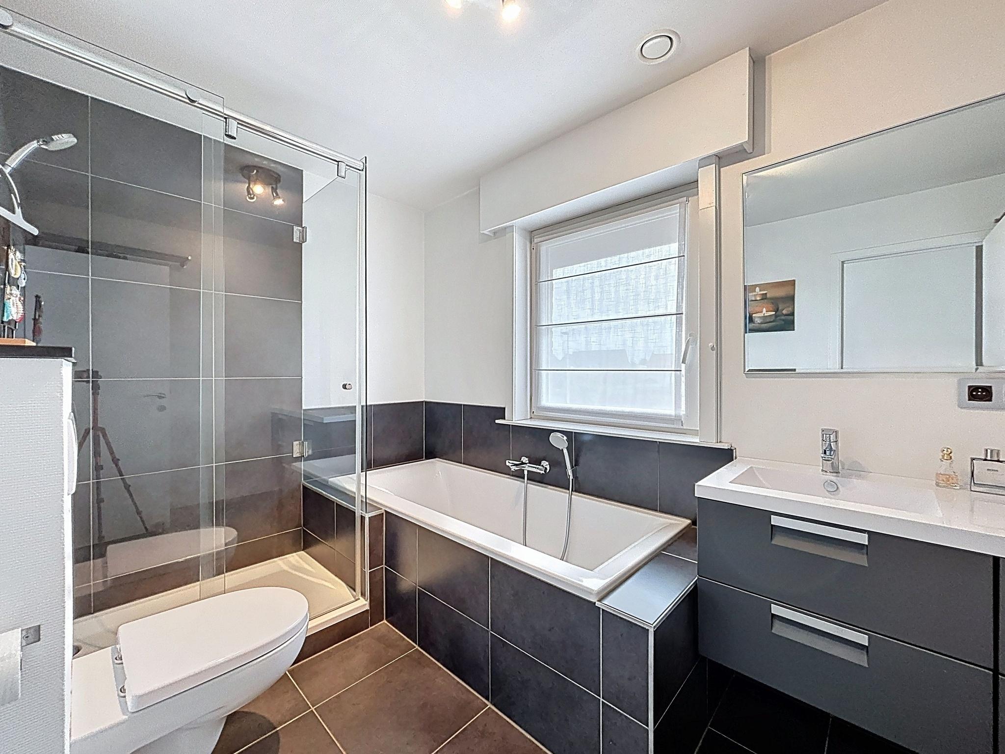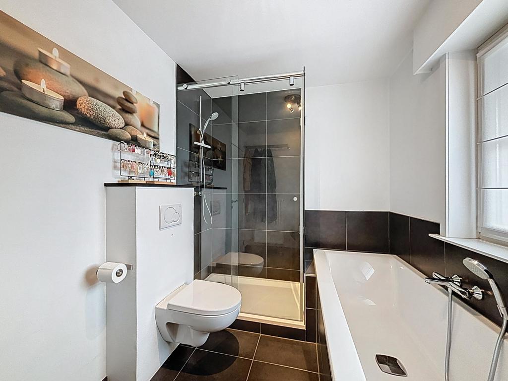 Op de eerste verdieping vind je drie volwaardige slaapkamers en een ruime badkamer met bad, douche, dubbele lavabo en toilet. Via een luik bereik je de zolder, die extra opbergruimte biedt.