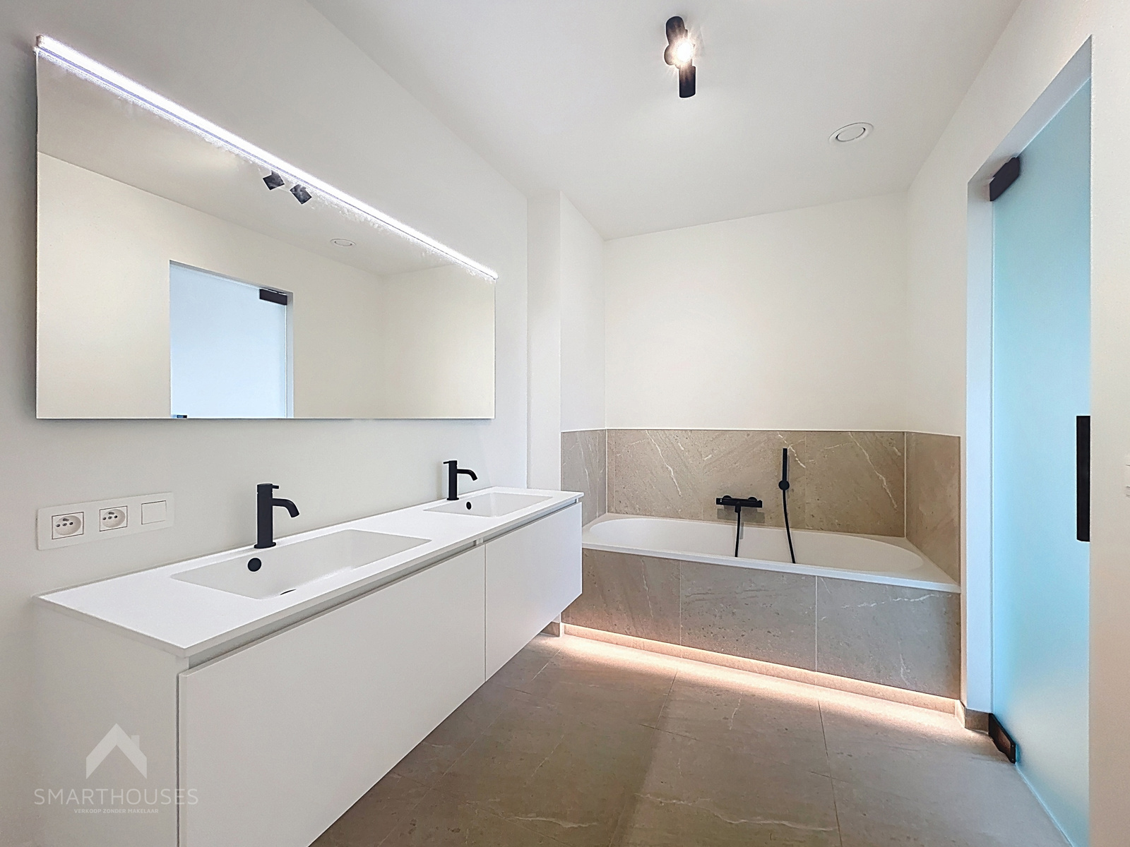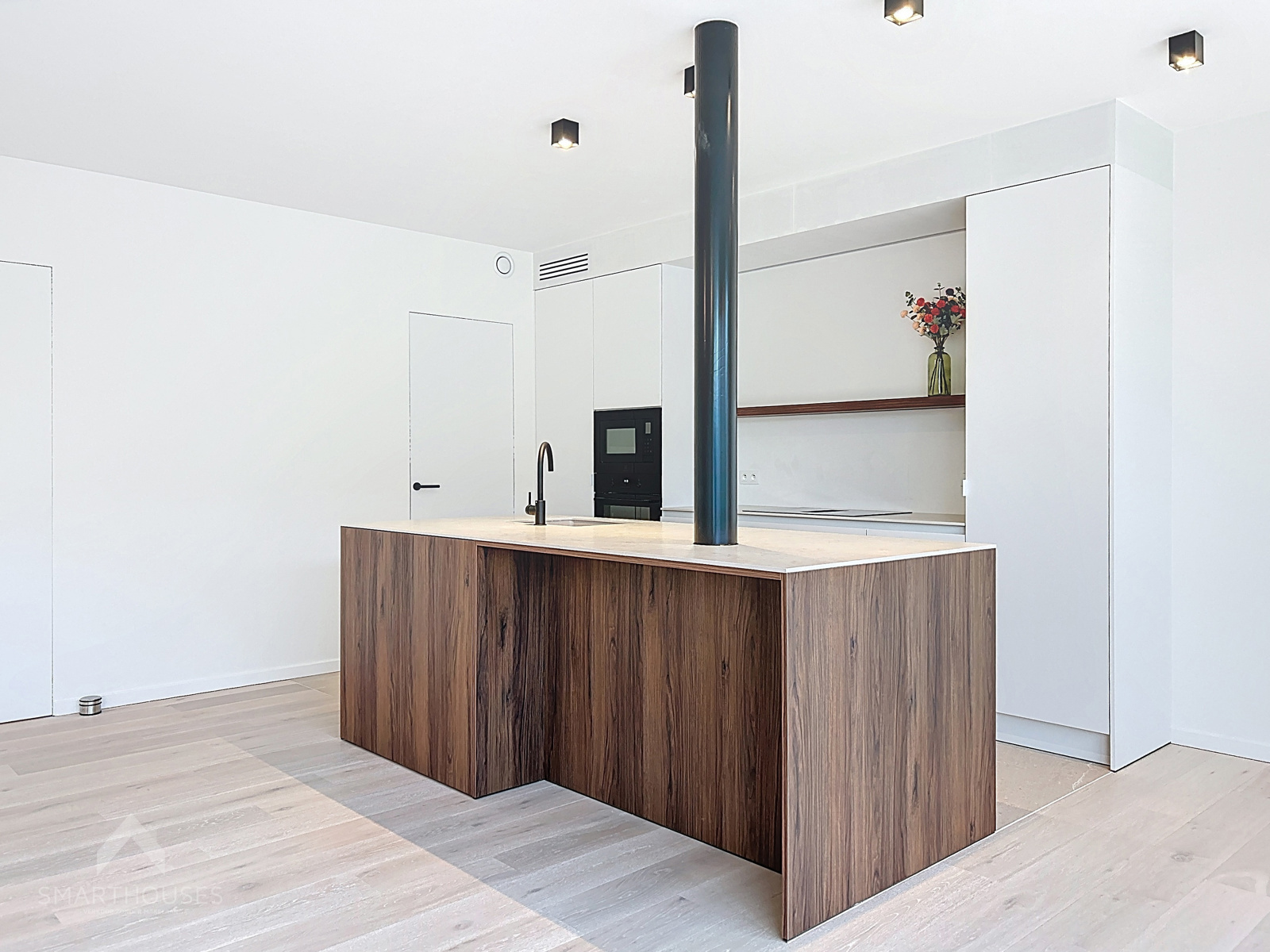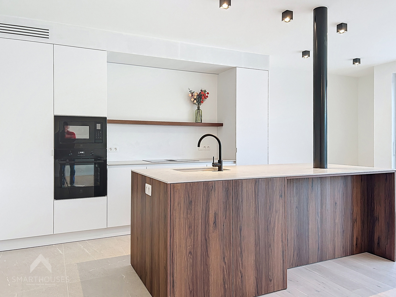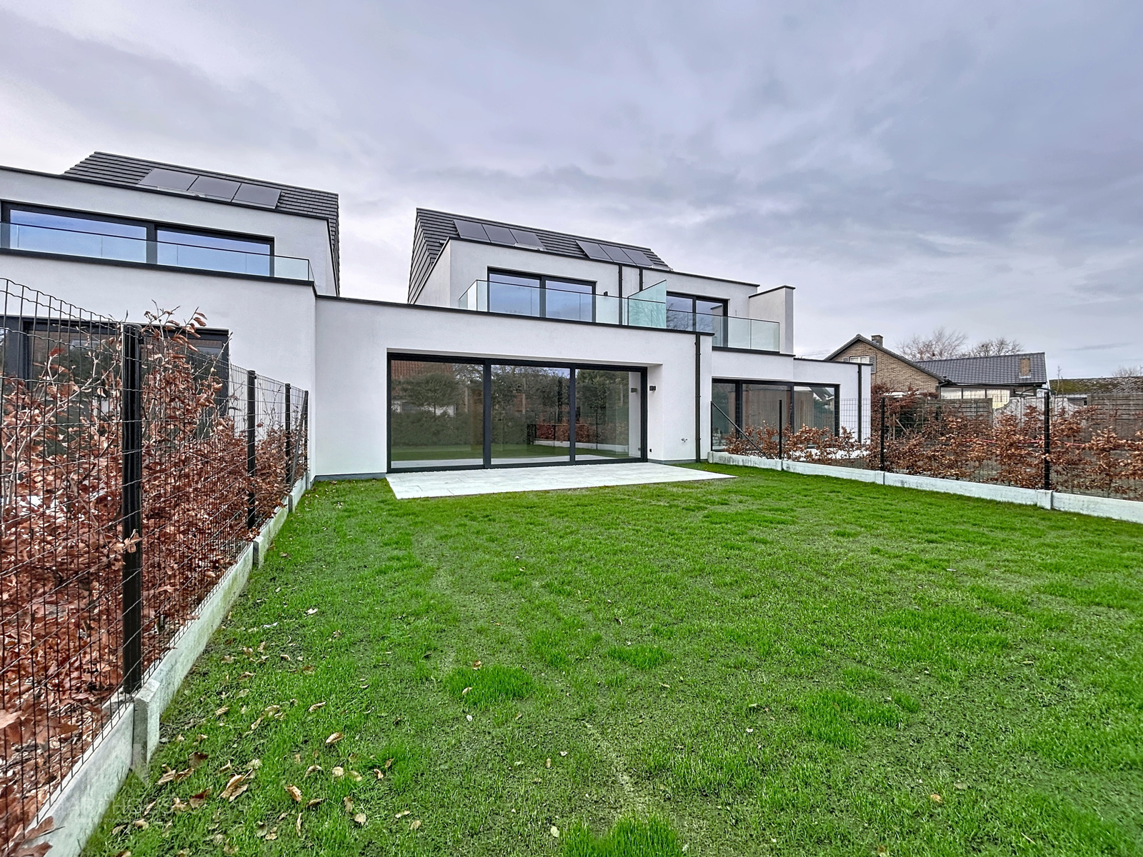 Zeer energiezuinige (BEN) nieuwbouwwoning op een interessante locatie bestaande uit een inkomhal met gastentoilet, lichtrijke leefruimte met eet-en zithoek, een volledig uitgeruste open keuken met eiland, praktische was/bergplaats, bureel/slaapkamer en een onderhoudsvriendelijke tuin met groot terras.