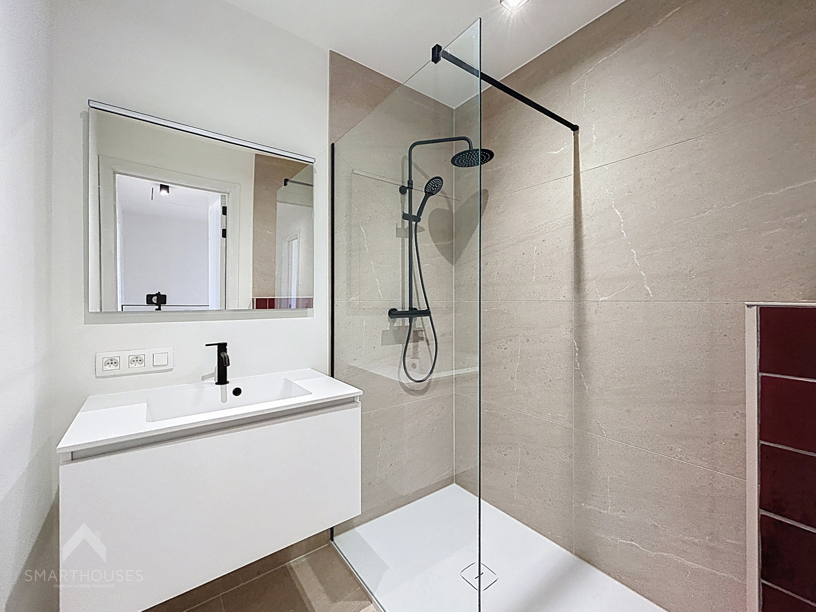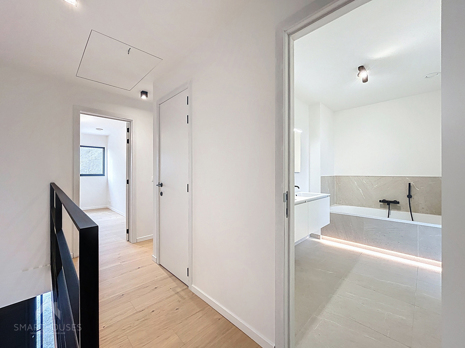 Op het verdiep zijn 3 slaapkamers, 2 badkamers, nachthal met afzonderlijk toilet, dakterras en een trapluik naar de geïsoleerde bergzolder.