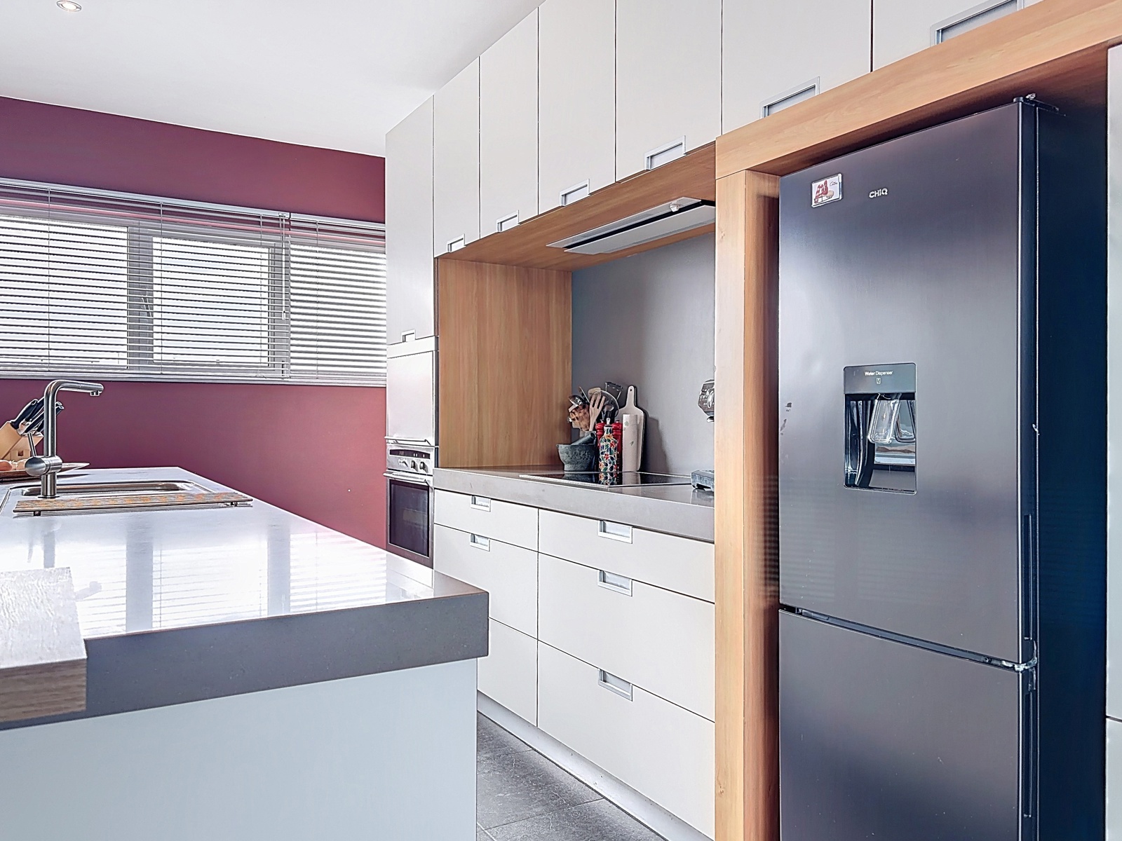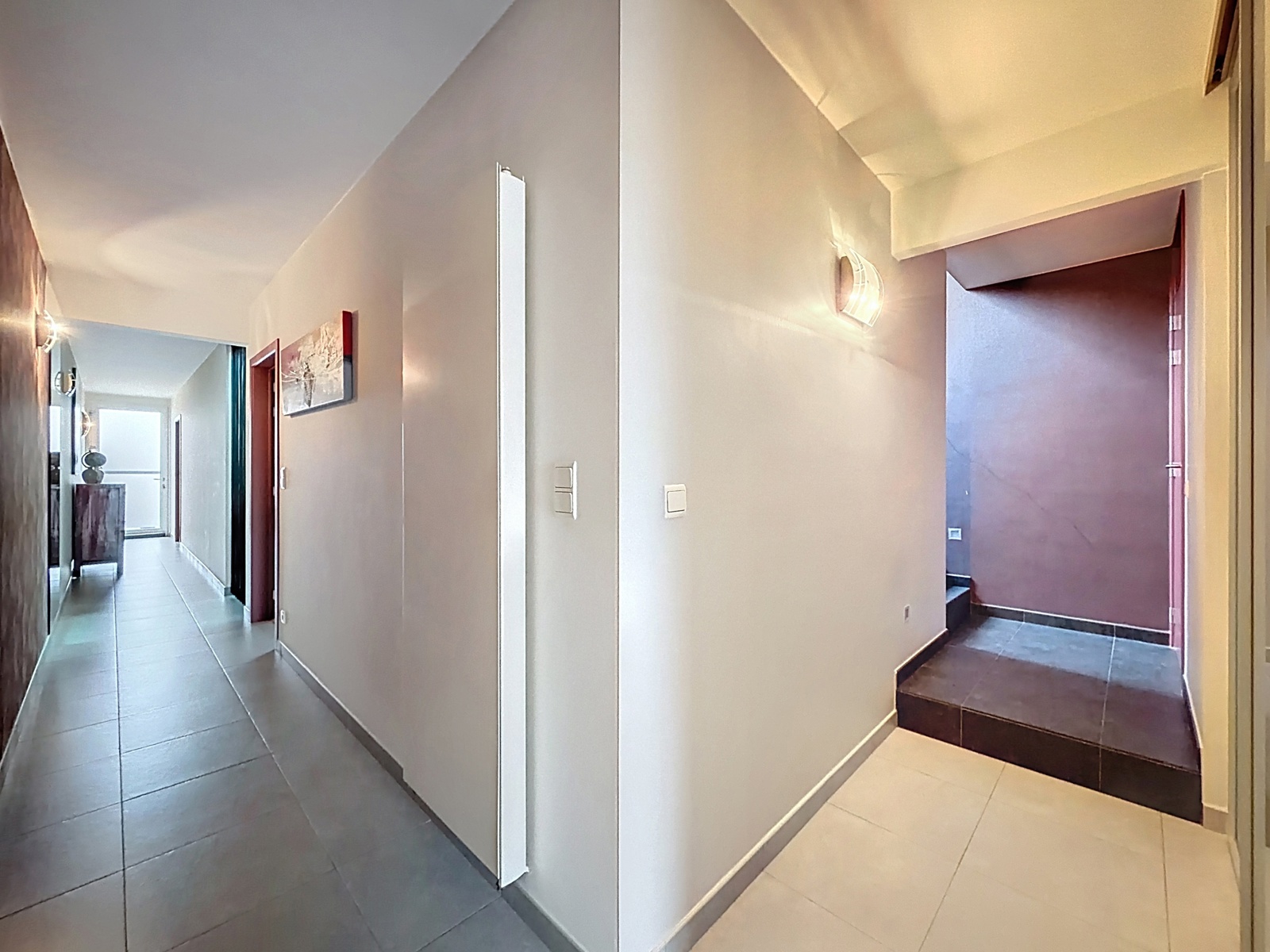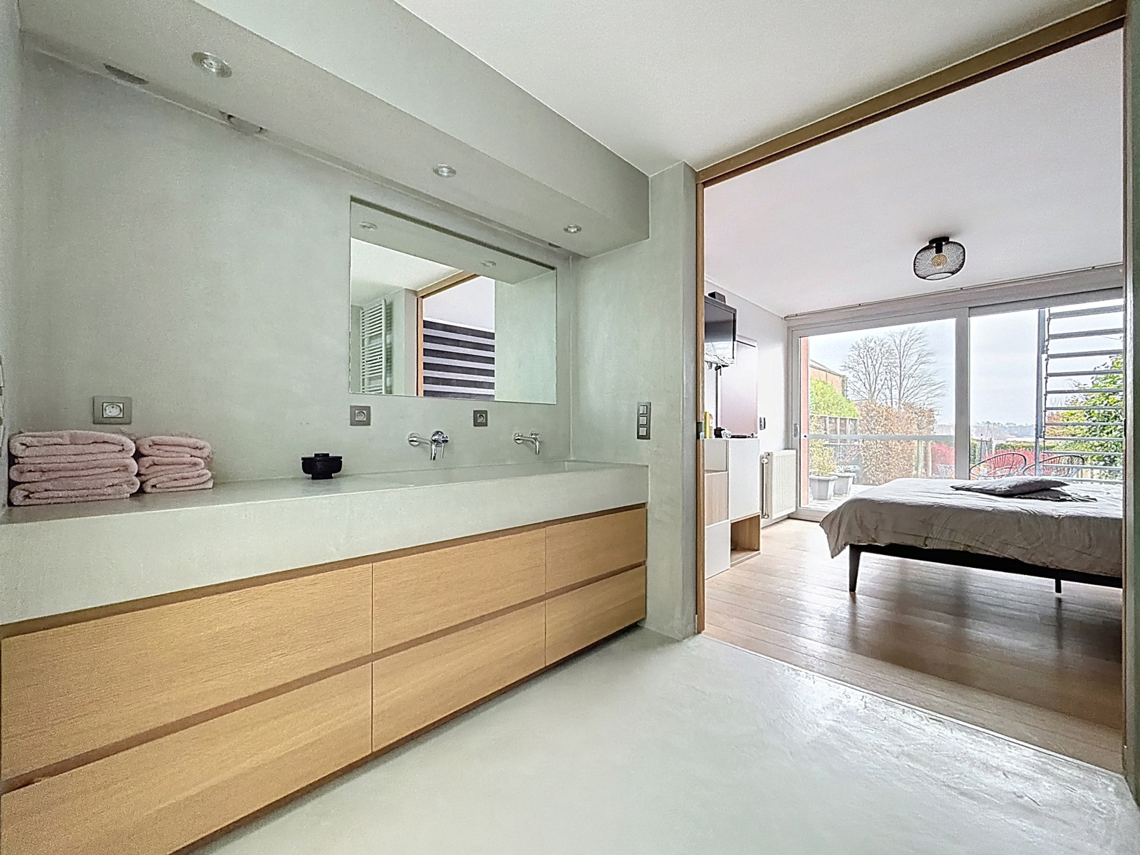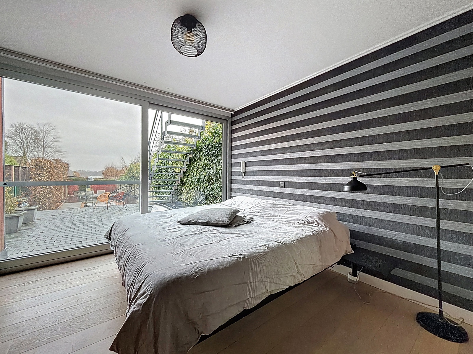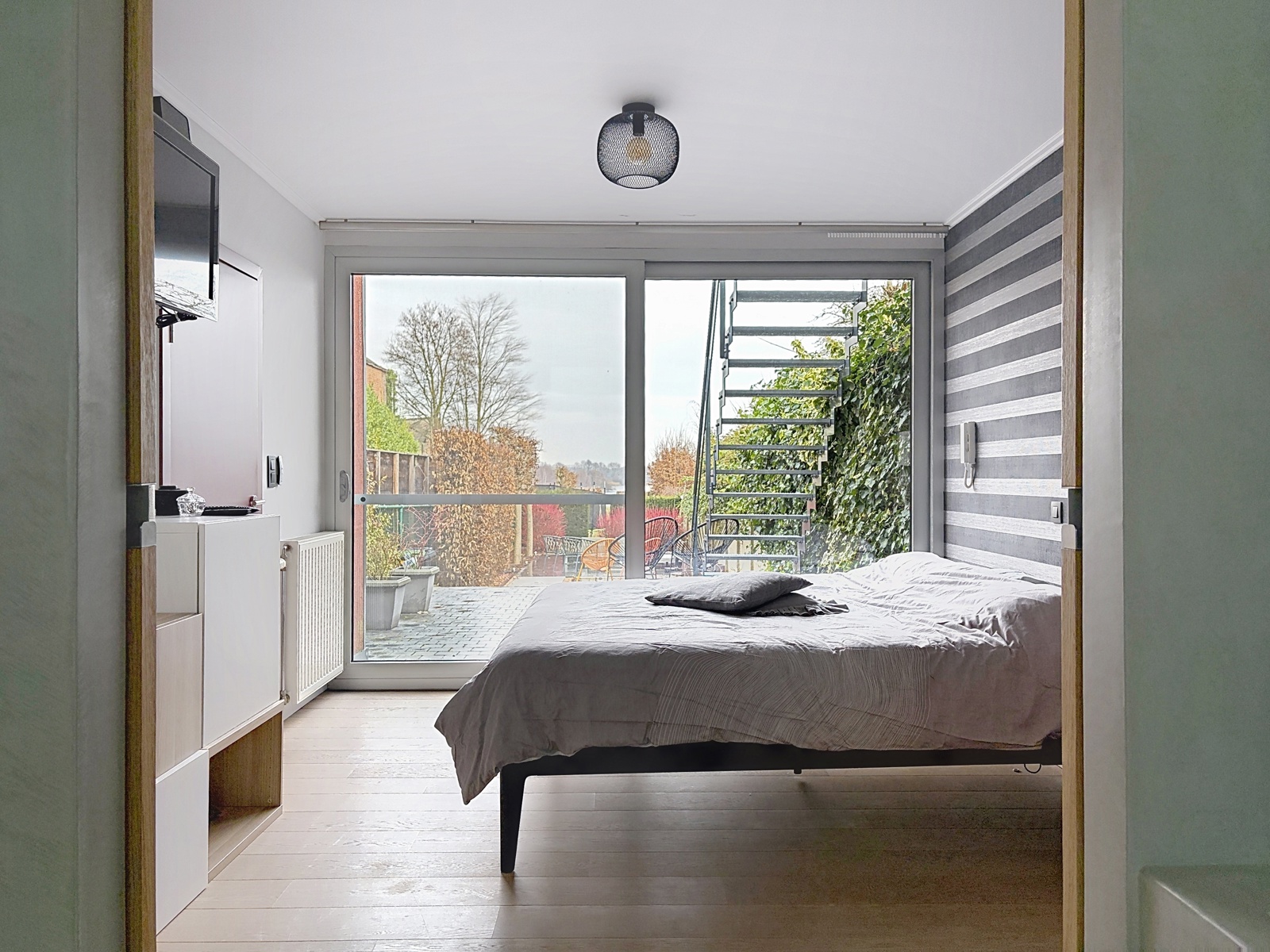 Energiezuinige woning op een sublieme locatie, gelegen langs het Dijlepad met uitzicht op De Nekker en het natuurdomein Mechels Broek, op 1,5 km van het centrum van Mechelen. De woning bestaat uit een inkomhal met afzonderlijk toilet en vestiaire, een garage met sectionale poort, twee slaapkamers, een ingebouwde dressing, een prachtige badkamer (inloopdouche, ligbad, dubbele wastafel), afgewerkt met de mortex-techniek, en een grote tuin met aangelegd terras en uitweg op het Dijlepad. Op de eerste verdieping bevindt zich de volledig uitgeruste open keuken met eetplaats, die toegang biedt tot het dakterras met een open en uniek uitzicht op provinciedomein De Nekker. Op de tweede verdieping bevindt zich een gezellige zithoek met tv-wand en bureel, evenals een tweede dakterras.