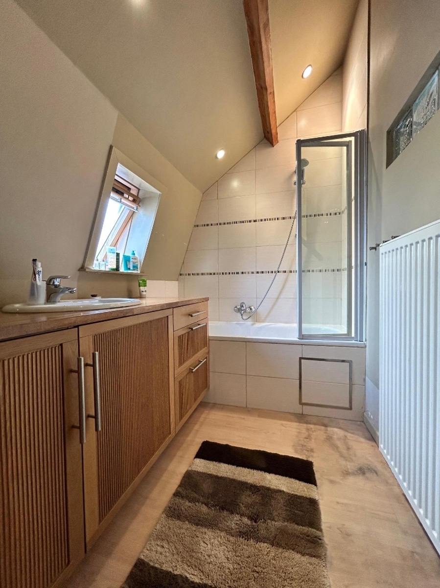 Situation idéale, comprenant une partie commerce/bureau, séjour lumineux, cuisine équipée avec coin repas, atelier de +/- 135m2 et un jardin avec une grande terrasse. Le premier étage comprend 2 chambres, dressing, 2 salles de bains et une buanderie avec de nombreuses armoires sur mesure. Au deuxième étage se trouvent 2 grandes chambres.