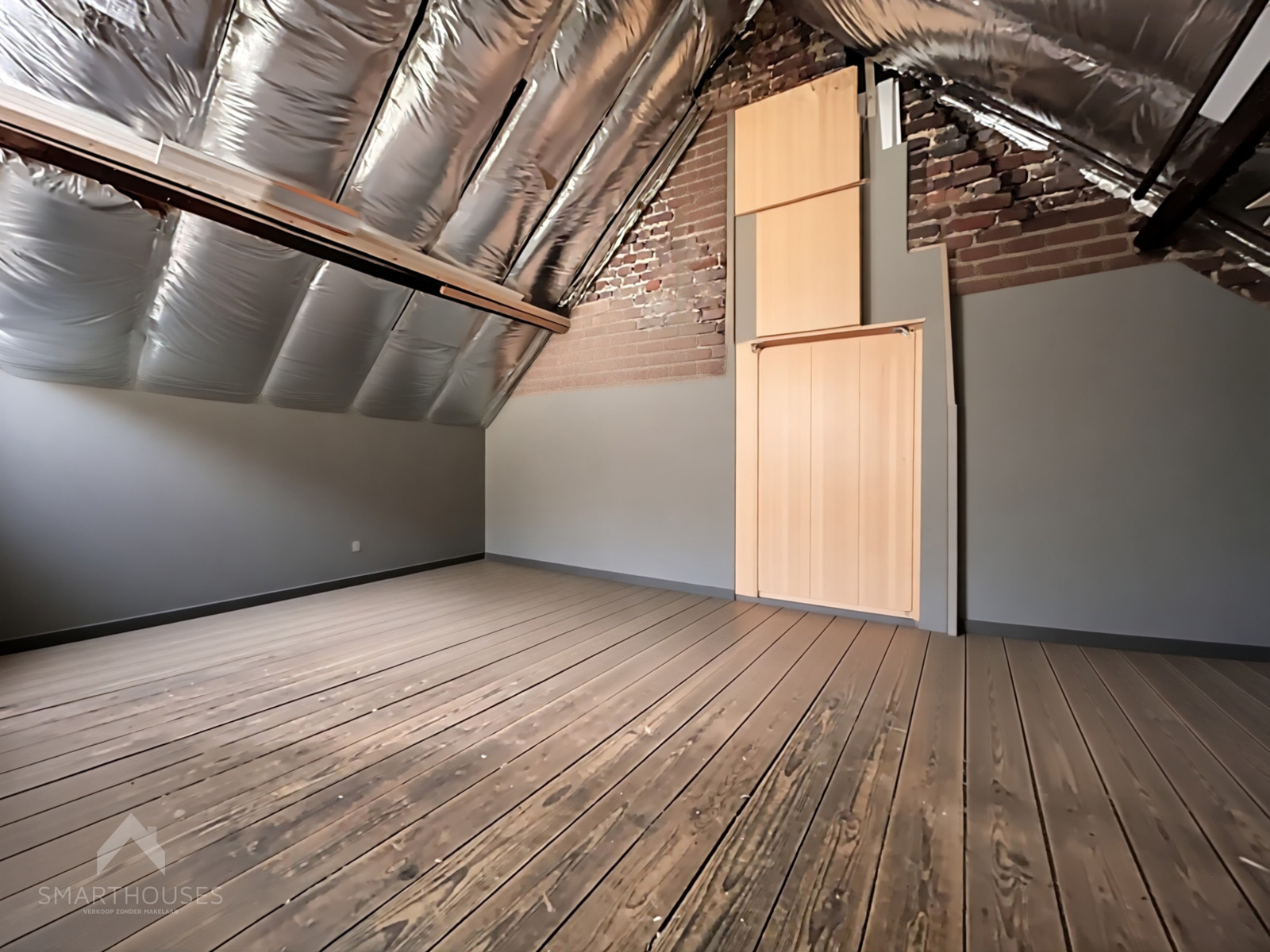 Op de eerste verdieping bevindt zich een 1ste slaapkamer, een prachtige badkamer (ligbad, inloopdouche, lavabomeubel, toilet + aansluiting wasmachine) en een vaste trap naar de 2de verdieping die ingericht is met een 2de en 3de slaapkamer + een trap naar de geïsoleerde zolderruimte met extra mogelijkheden.
