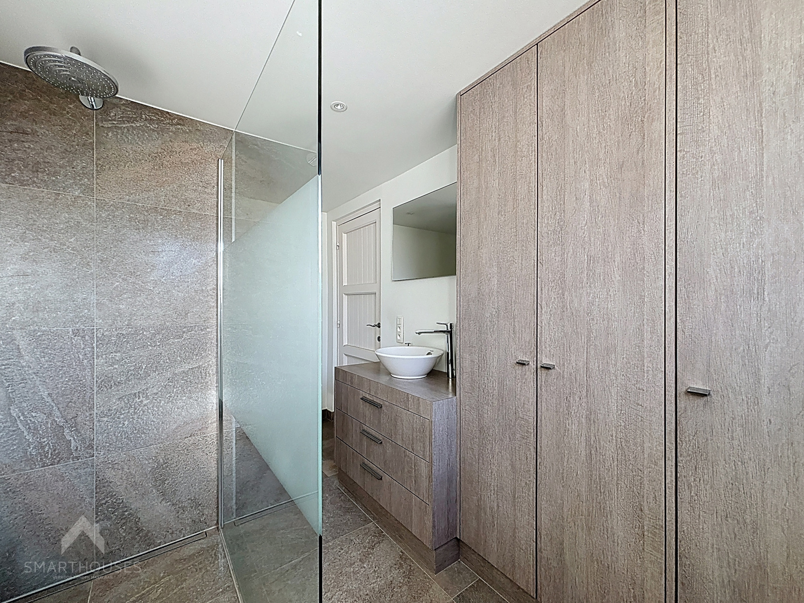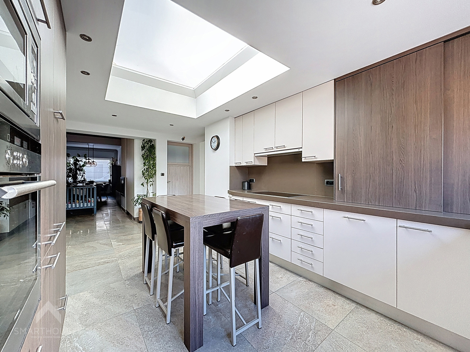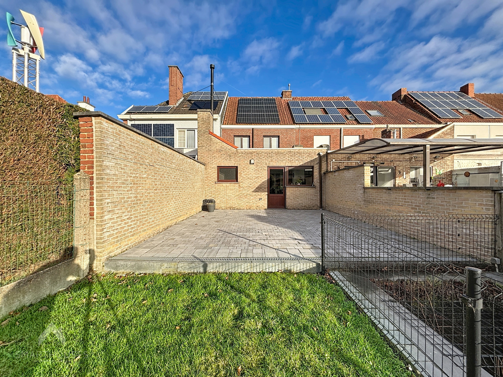 De open, volledig uitgeruste keuken vormt het hart van de woning en kijkt uit op de zonnige tuin. De grote, onderhoudsvriendelijke tuin met terras en tuinhuis biedt volop privacy en nodigt uit tot ontspanning. Langs de zijkant van de woning is er een praktische doorgang met aparte toegang. Ideaal voor fietsen, vuilnisbakken of tuinmateriaal. Verder beschikt de woning over een berging met wasplaats en een functionele badkamer met douche, lavabo en toilet. Op de eerste verdieping bevinden zich drie volwaardige slaapkamers en een bureauruimte. De ruime zolder, bereikbaar via een trapluik, biedt bijkomende opberg- of uitbreidingsmogelijkheden. Dankzij de zonnepanelen geniet u bovendien van een energiezuinige woonoplossing.