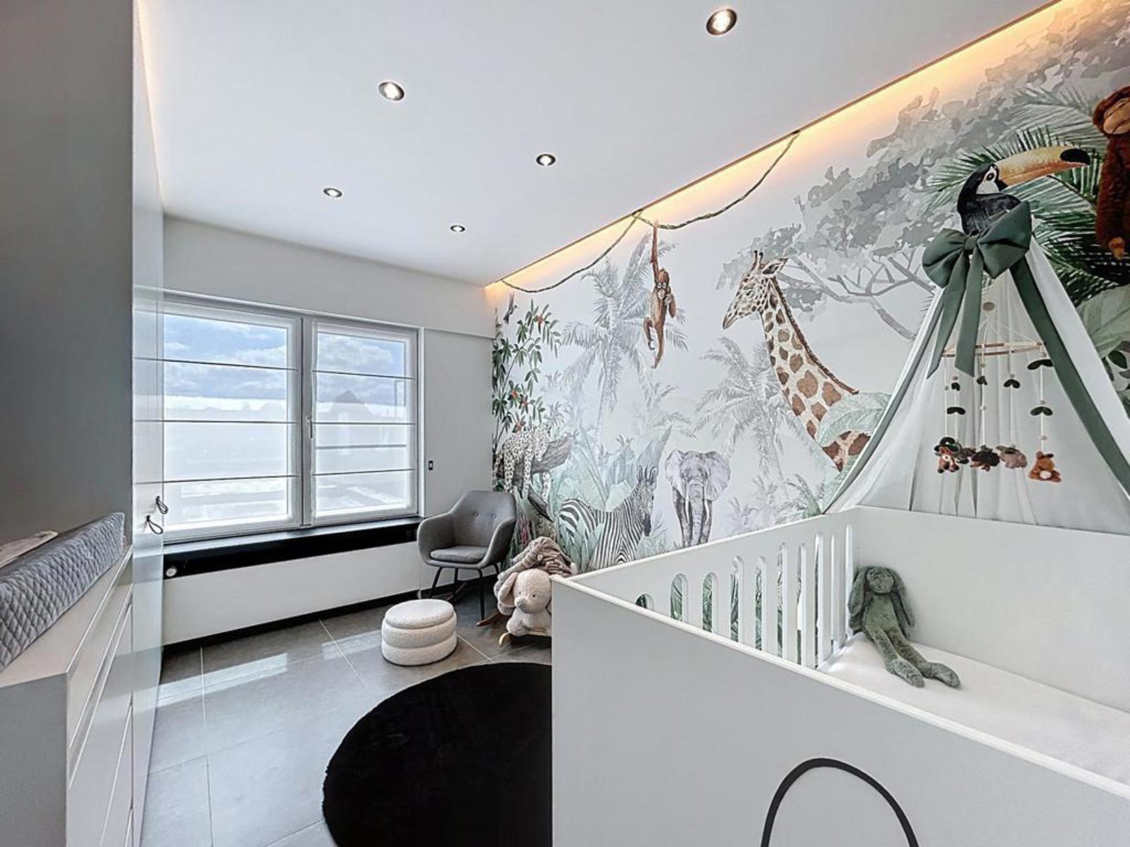 Op de eerste verdieping bevinden zich 3 slaapkamers, een tweede badkamer met inloopdouche, lavabomeubel en toilet, en een trapluik naar de ruime, geïsoleerde zolder. Deze zolder kan, mits het plaatsen van een vaste trap, afgewerkt worden als vierde slaapkamer.
