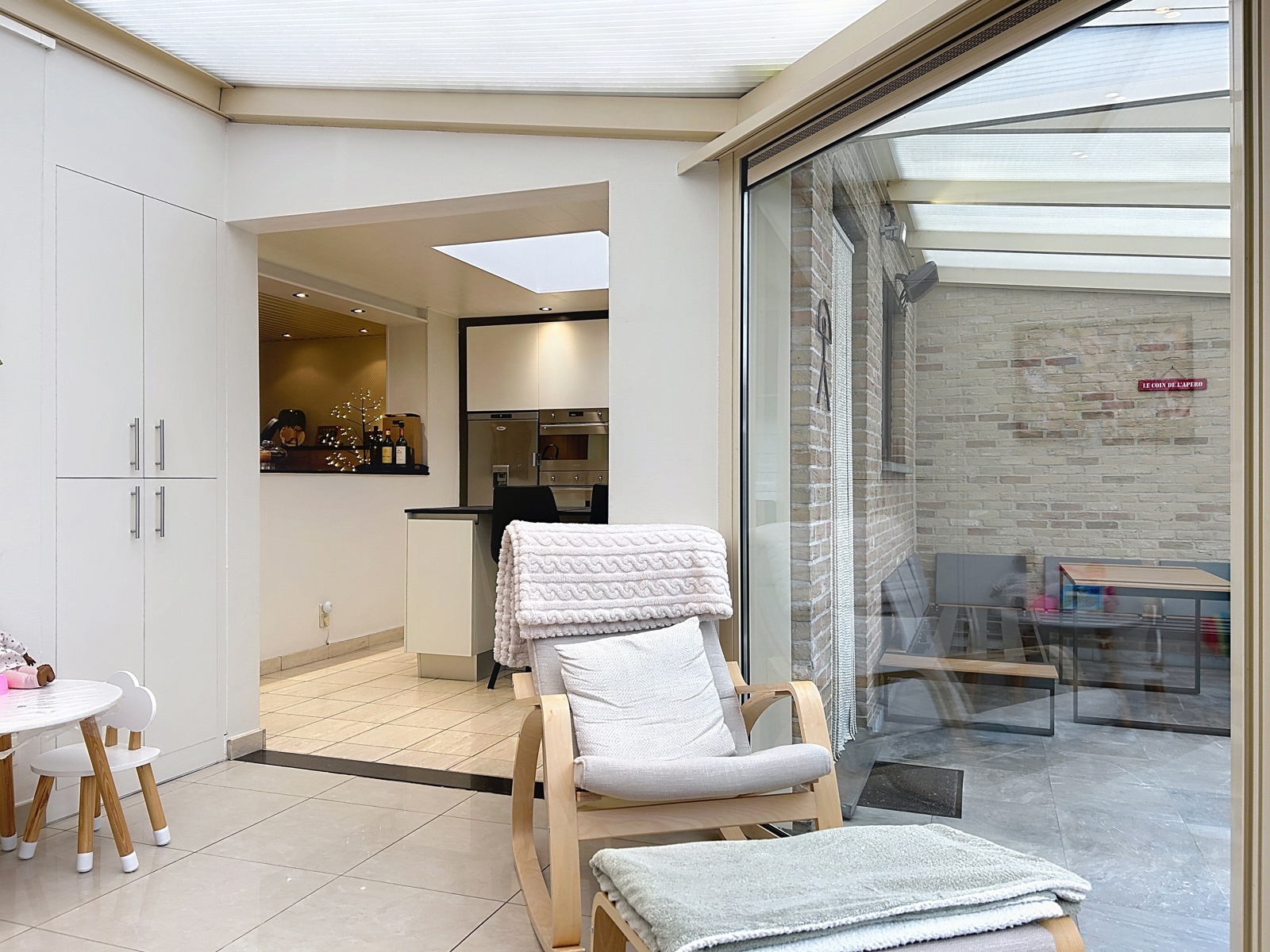 Op het verdiep bevinden zich 3 slaapkamers, een ingerichte badkamer (inloopdouche en lavabomeubel) en een trapluik naar de geïsoleerde zolder.