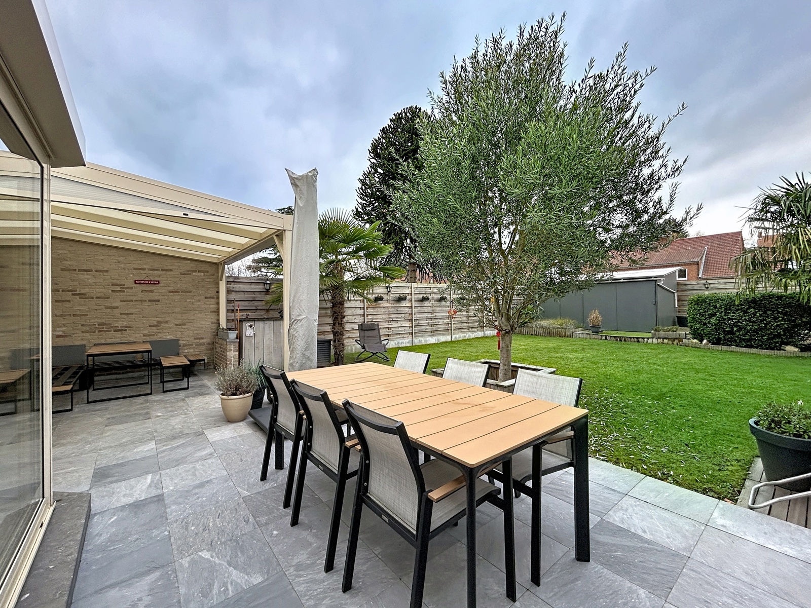 Energiezuinige woning op 321 m² in een rustige omgeving, bestaande uit een inkomhal met afzonderlijk toilet, gezellige leefruimte met eet- en zithoek, recent vernieuwde keuken met eetplaats, veranda/polyvalente ruimte, was-/bergplaats, garage met sectionale poort en een omheinde tuin met aangelegd terras en tuinberging.
