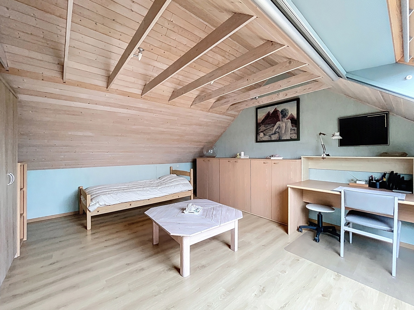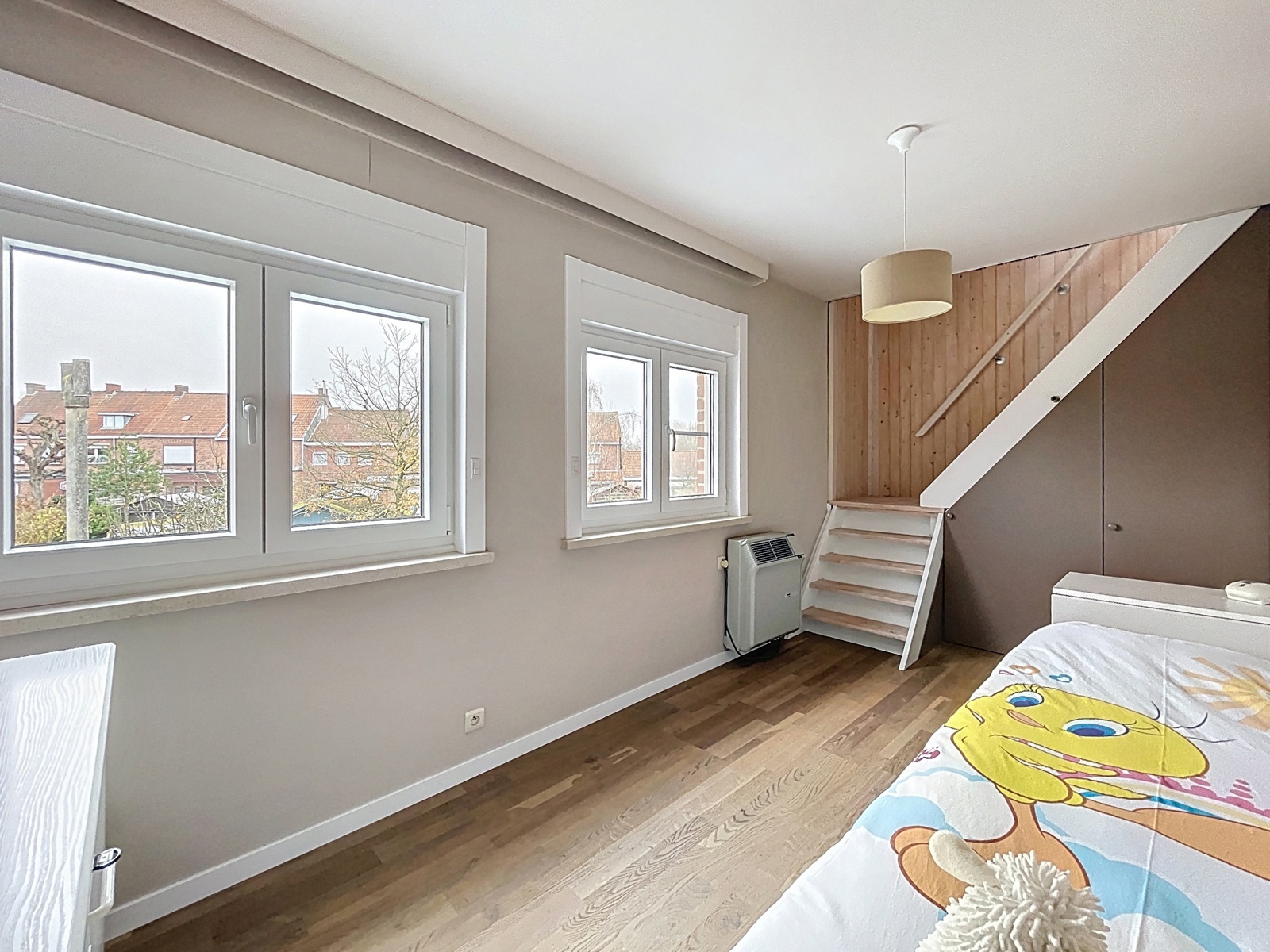 Via de vaste trap bereik je de tweede verdieping, ingericht met een vierde slaapkamer en een geïsoleerde bergzolder.