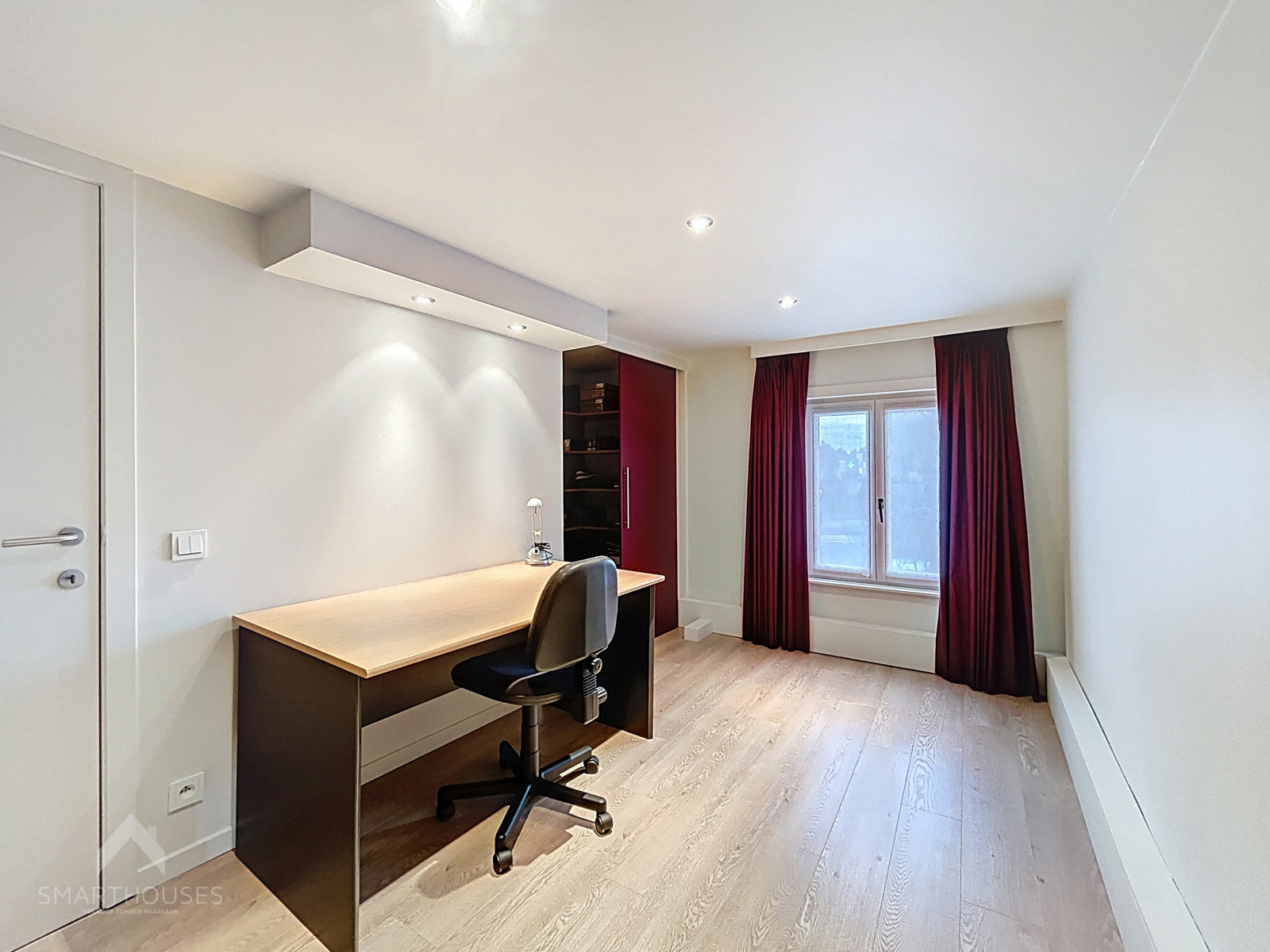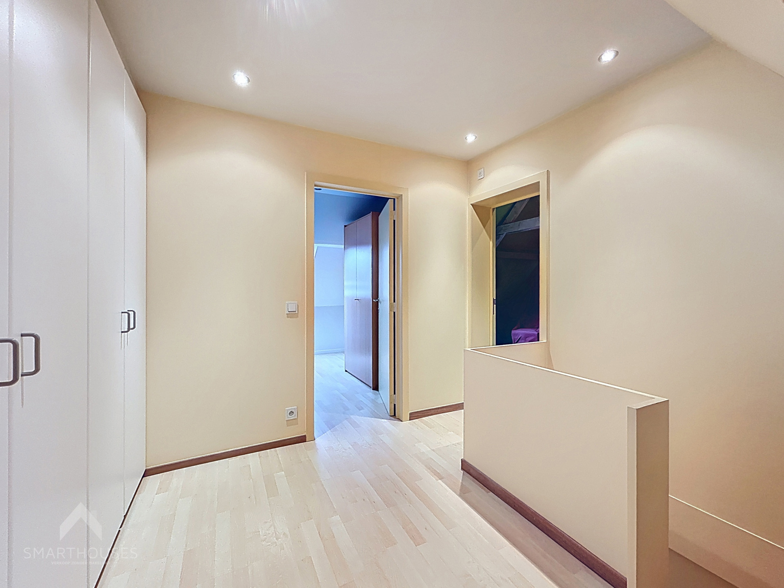 Op de eerste verdieping bevinden zich drie slaapkamers en een vernieuwde badkamer met inloopdouche, lavabomeubel en toilet. Via een vaste trap bereikt u de tweede verdieping. Hier vindt u een nachthal met ingemaakte kasten en een vierde en ruime vijfde slaapkamer of polyvalente ruimte. Een ideale woning voor grotere gezinnen of wie nood heeft aan extra kamers en flexibiliteit.