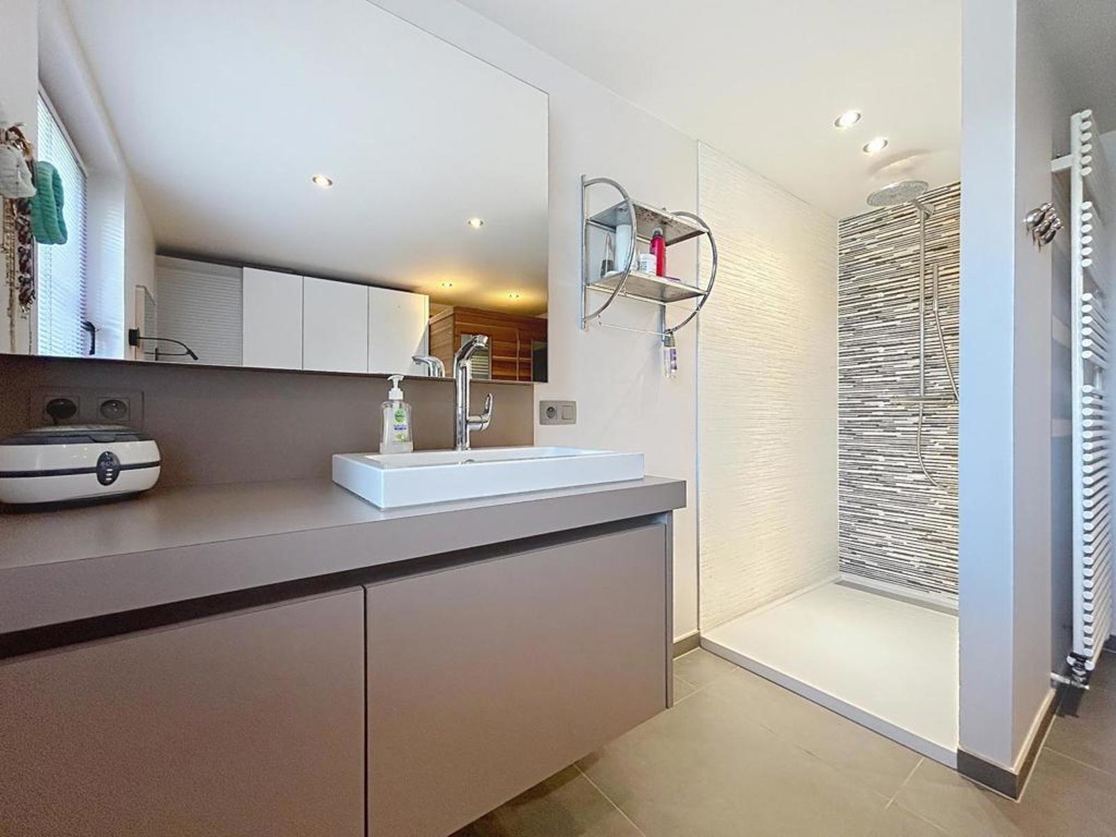 Op de verdieping bevinden zich vier ruime slaapkamers, waaronder een master bedroom met dressing en terras , een berging en een prachtige badkamer met losstaand bad, toilet en lavabomeubel. Via een trapluik is de bergzolder bereikbaar.