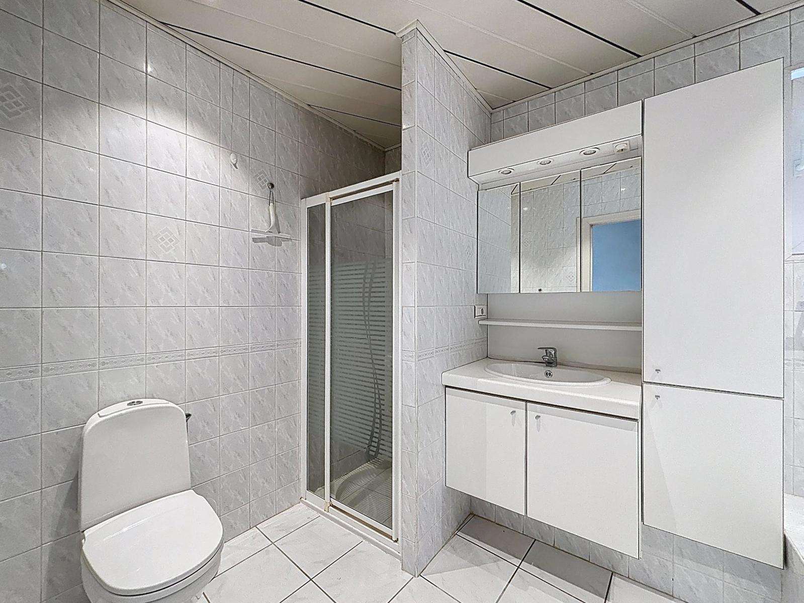 De inkomhal geeft toegang tot de kelder, handig als extra opslag. De ruime leefruimte met zit- en eethoek sluit aan op de grote open keuken, perfect voor een ontbijthoek of familietafel. Daarnaast is er een praktische berging/wasruimte. De badkamer is volledig uitgerust met bad, douche, lavabo en toilet.