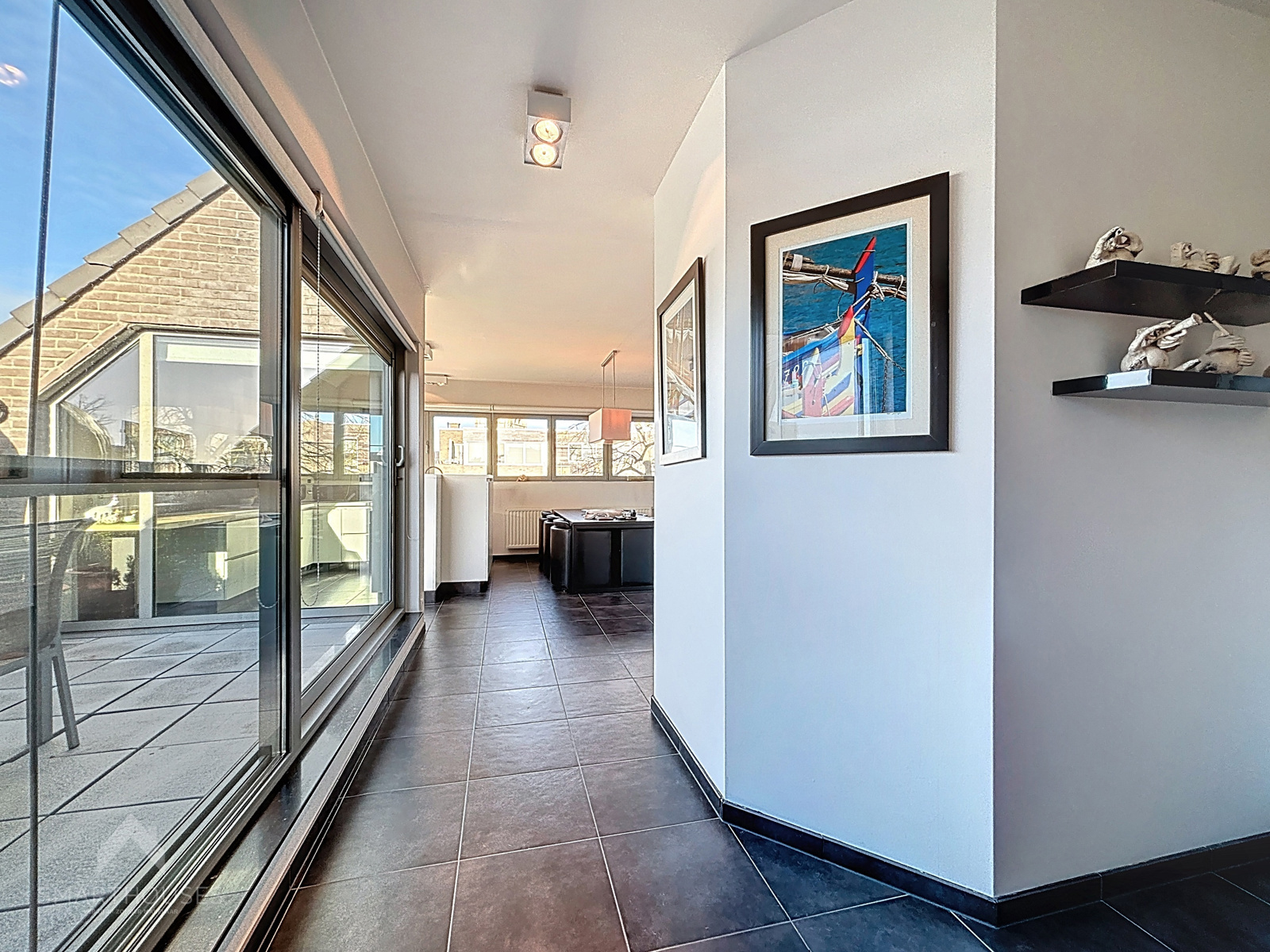 De inkomhal biedt plaats voor een vestiaire of hallkast en geeft toegang tot een gastentoilet. Vanuit de eetruimte geniet u van een prachtig zicht naar buiten dankzij de vele ramen. De praktische keuken beschikt over veel werkblad en kwalitatieve toestellen, ideaal voor de hobbykok en grenst aan een berging met een nieuwe gascondensatieketel en waterverzachter. De gezellige zithoek met gashaard kijkt uit op het terras en is voorzien van ingemaakte kasten die zorgen voor een opgeruimd geheel. Het appartement telt drie slaapkamers, waaronder een masterbedroom met airco, dressing en eigen doucheruimte. Verder is er een badkamer met ligbad, dubbele lavabo en toilet. De ligging is een absolute troef: kerk, markt, stadhuis, winkels, restaurants en sportvoorzieningen bevinden zich op wandelafstand.