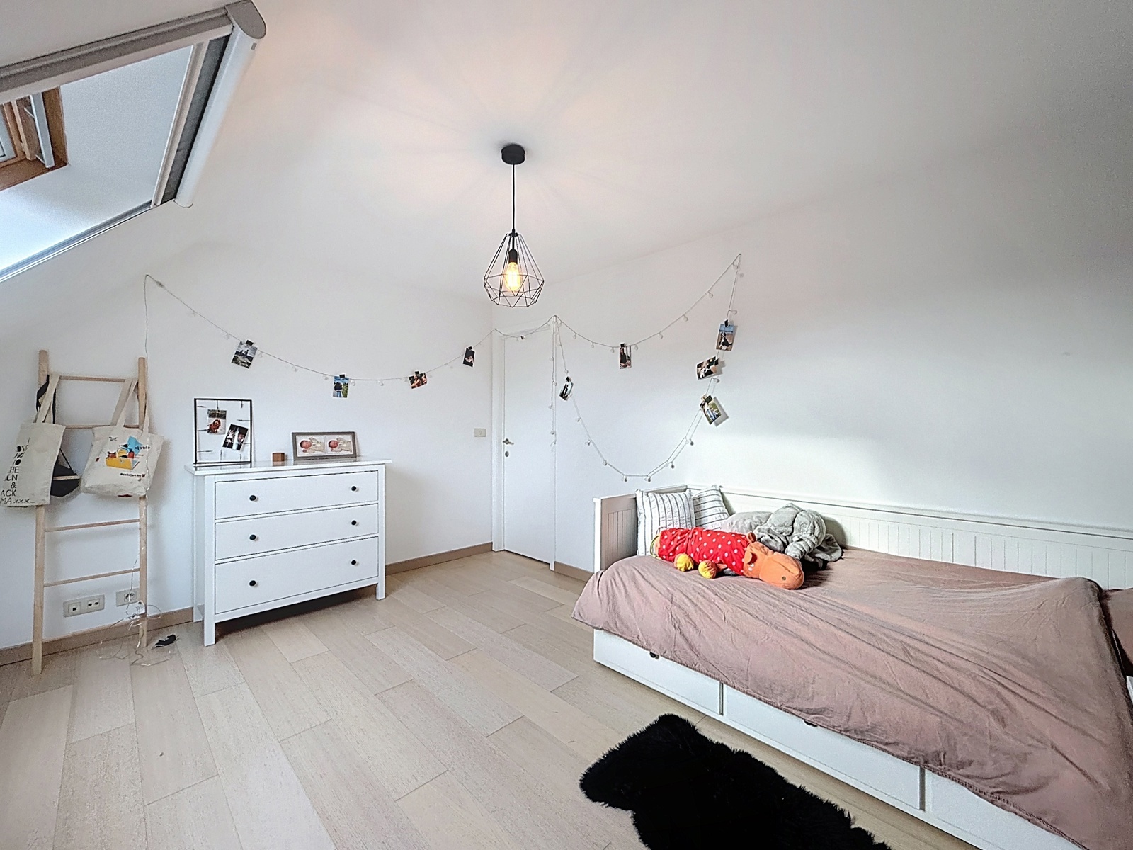 Instapklare woning op een centrale locatie bestaande uit een inkomhal met gastentoilet en ingemaakte kast, gezellige leefruimte met eet-en zithoek + houtkachel, recent vernieuwde keuken met eetplaats, garage met wasplaats en een grote zuid gerichte tuin met aangelegde terrassen en tuinberging. Op de 1ste verdieping zijn 3 volwaardige slaapkamers, nachthal met afzonderlijk toilet, ingerichte badkamer (inloopdouche, ligbad en lavabomeubel) en een vaste trap naar de 2de verdieping die ingericht is als 4de slaapkamer.
