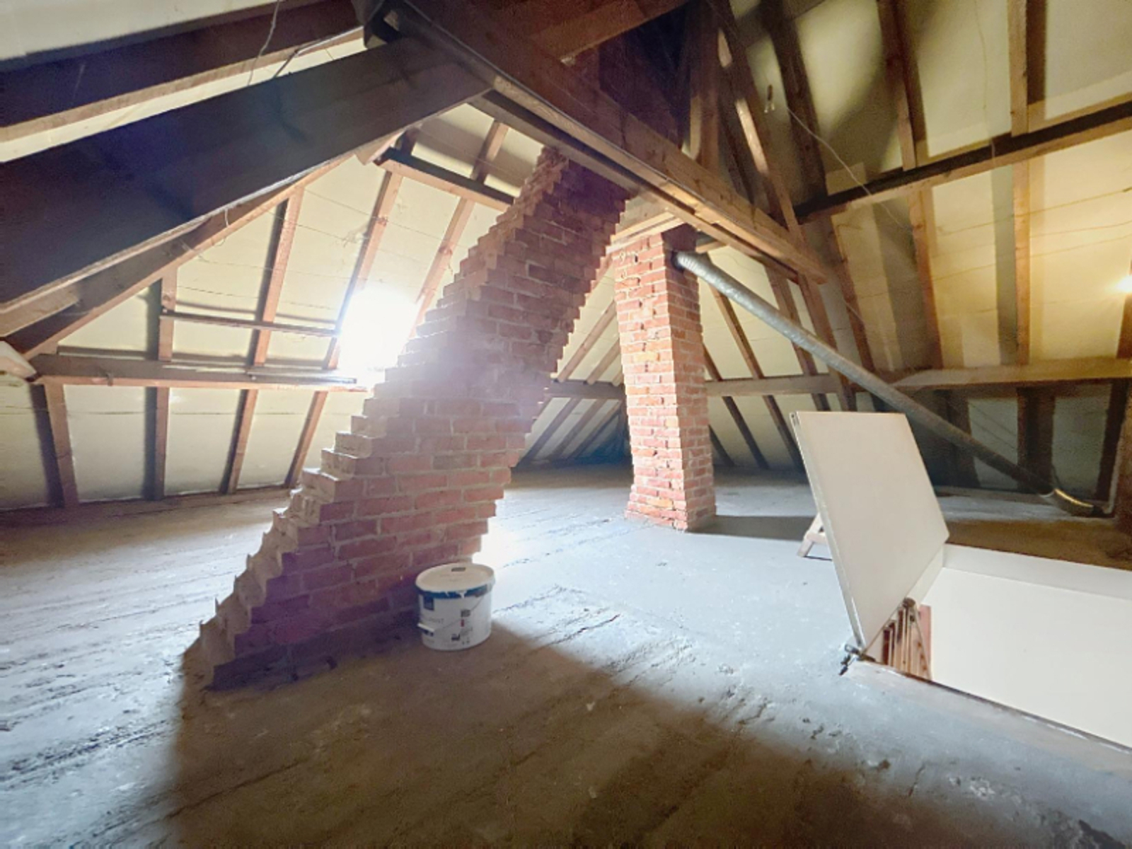 Op het 1ste verdiep zijn 3 slaapkamers, badkamer (ligbad en lavabo) en een vaste trap naar de zolder die kan afgewerkt worden naar eigen wensen.