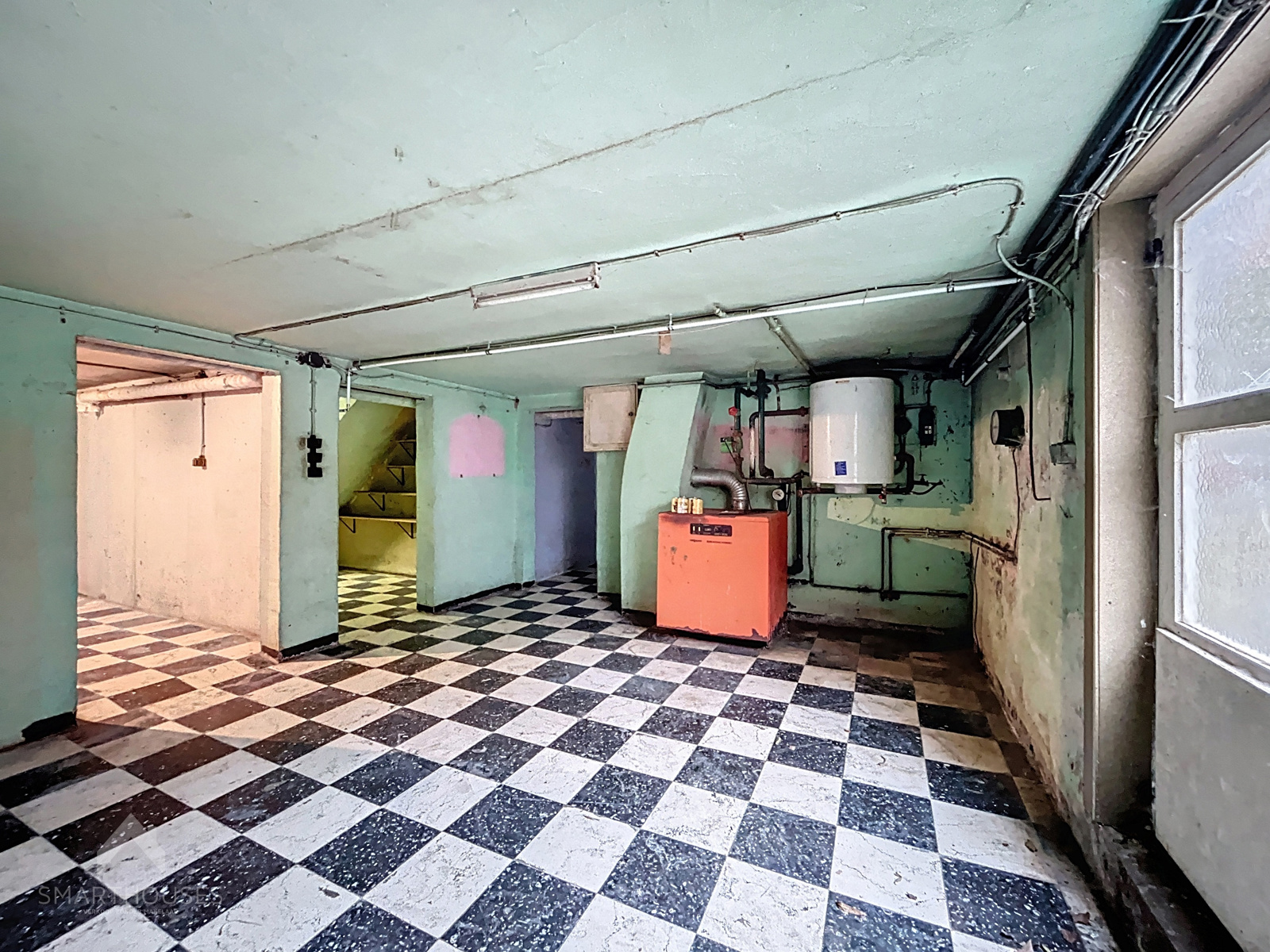 Te renoveren vrijstaande woning op een interessante locatie bestaande uit een inkomhal met vestiaire en gastentoilet, lichtrijke leefruimte met eet-en zithoek, keuken, slaapkamer, badkamer (ligbad en lavabo), bureel en een zuidwest gerichte tuin met terras en tuinberging. Op het verdiep zijn 4 slaapkamers, berging en een zolderruimte. De woning is volledig onderkelderd en voorzien van een garage, was/bergplaats en grote stockageruimte.