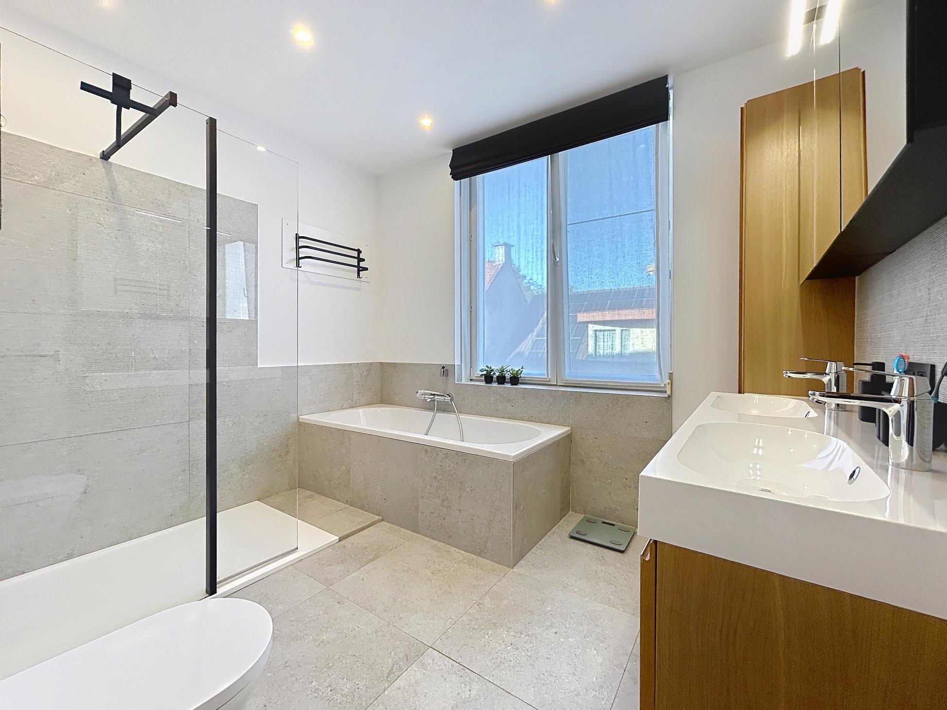 Energiezuinige woning op centrale locatie bestaande uit een inkomhal, gezellige leefruimte met eet-en zithoek, volledig uitgeruste leef keuken, afzonderlijk toilet, garage met sectionale poort + wasplaats en een private onderhoudsvriendelijke tuin met aangelegd terras. Op het 1ste verdiep zijn 2 ruime slaapkamers, dressing, recent vernieuwde badkamer (inloopdouche, ligbad, toilet en dubbele lavabo) en een vaste trap naar de 2de verdieping die ingericht is met een 3de,4de en 5de slaapkamer/bureel en een geïsoleerde bergzolder.