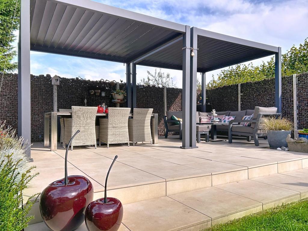 Aangelegde voortuin, carport en oprit voor meerdere wagens
