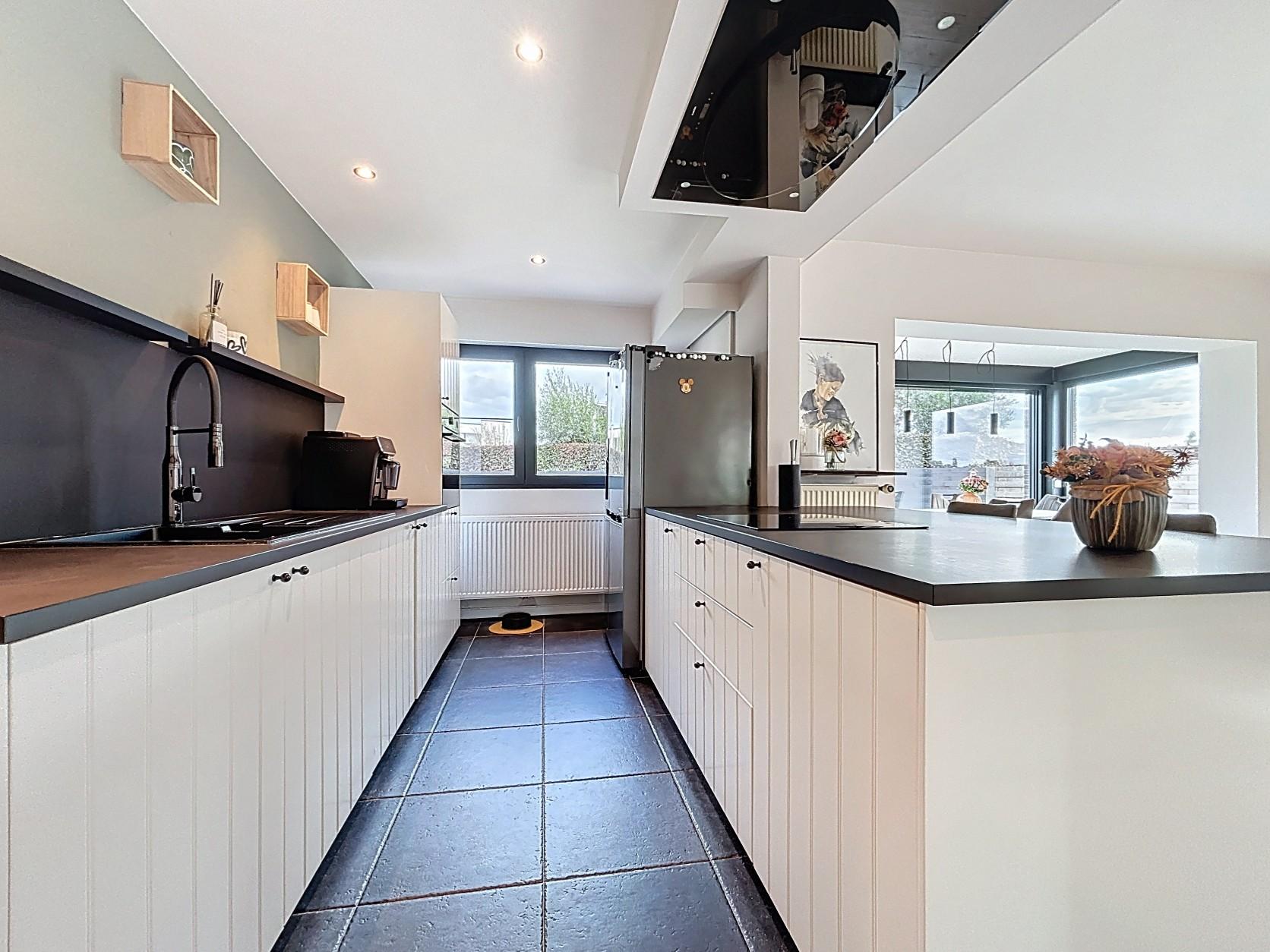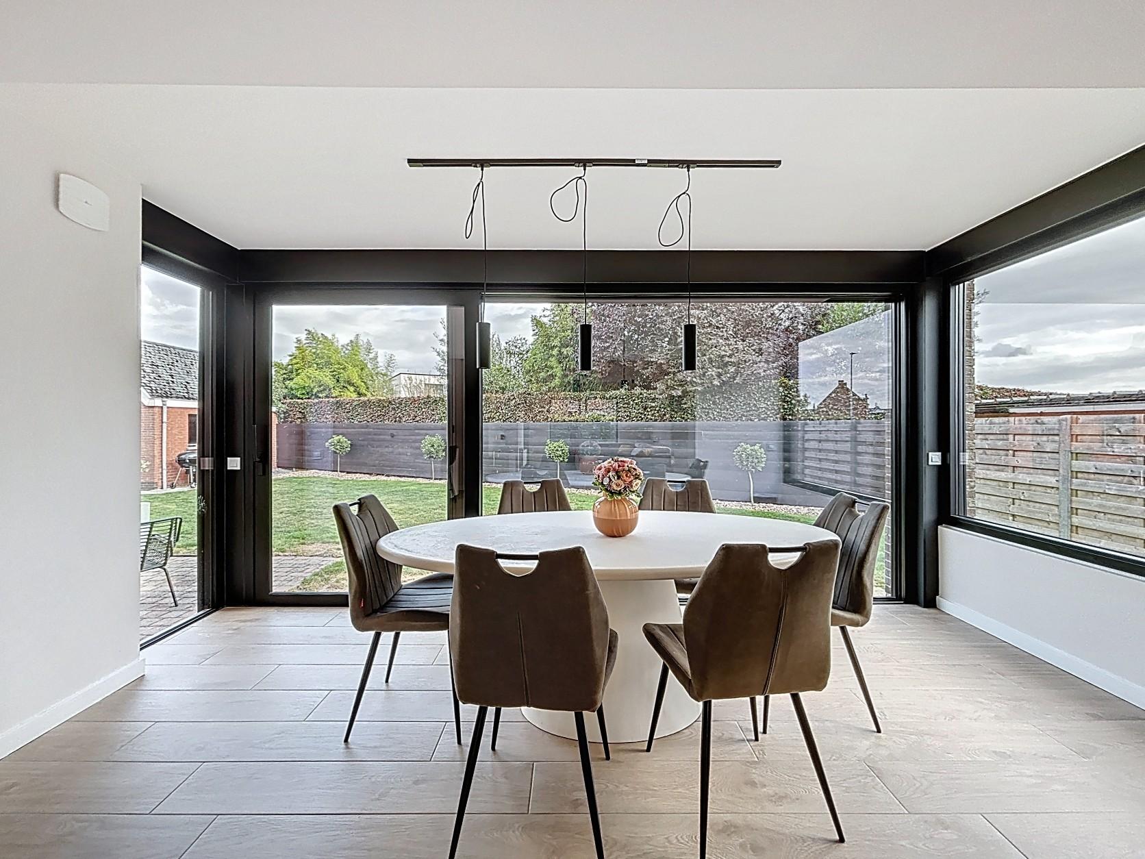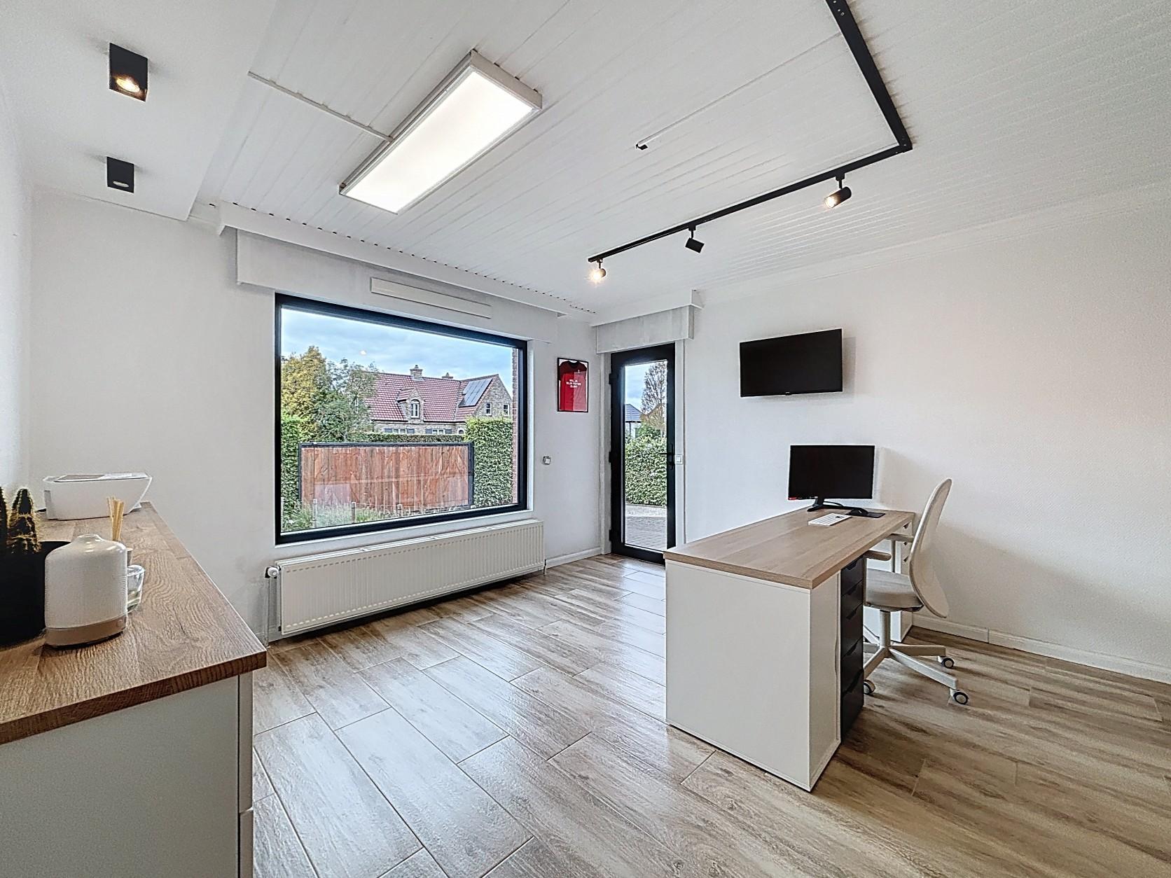 Deze recent gerenoveerde villa combineert comfort, ruimte en energiezuinig wonen. Dankzij de zonnepanelen en praktische indeling is dit een ideale gezinswoning op een gunstige locatie. Bij binnenkomst word je verwelkomd in de inkomhal met toegang tot de ruime bureau-/praktijkruimte met grote raampartijen. De bureau-/praktijkruimte heeft ook een aparte ingang. De ruime, lichtrijke leefruimte met gezellige houtkachel en eethoek biedt een prachtig zicht op de zuidgerichte tuin. De open keuken is kwalitatief uitgerust en sluit aan op een grote berging en wasplaats met rechtstreekse toegang tot de tuin.