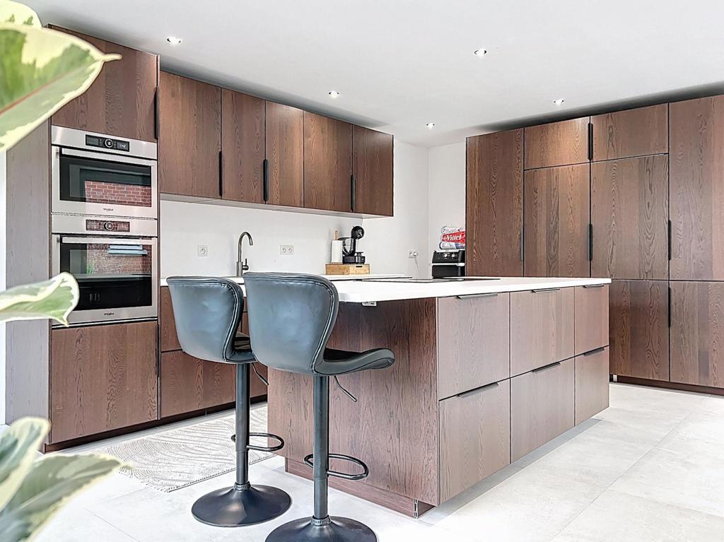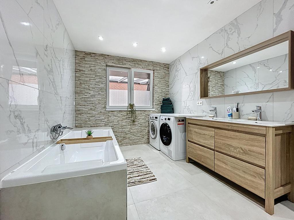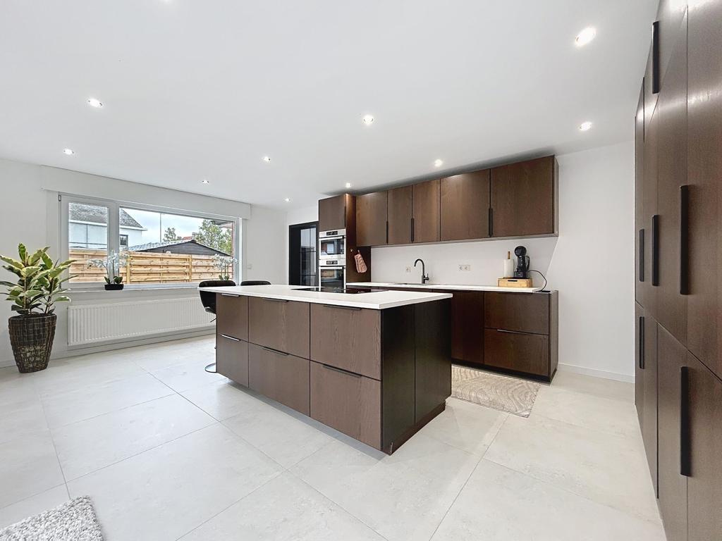 Alleenstaande woning in een rustige omgeving, bestaande uit een inkomhal, een ruime, lichtrijke leefruimte met eet- en zithoek, een volledig uitgeruste keuken met kookeiland, een ingerichte badkamer (ligbad, dubbele lavabo, toilet en aansluiting voor wasmachine), kelder en een diepe tuin met overdekt terras en losstaande garage.