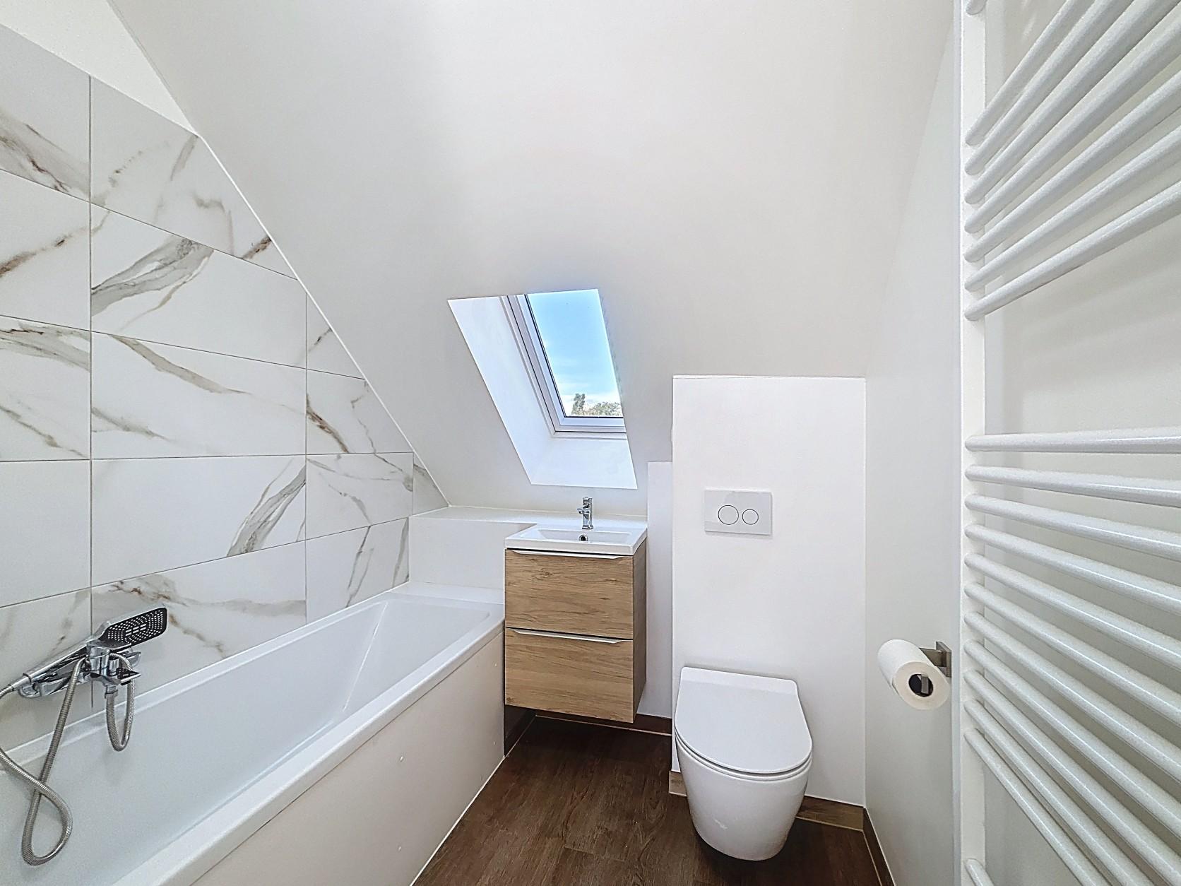 De tweede verdieping biedt nog eens 2 slaapkamers en een extra badkamer met ligbad, lavabo en toilet.
