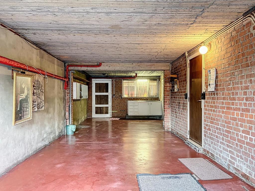 Op het gelijkvloers bevindt zich een inkomhal met vestiaire, een ruime garage met plaats voor twee wagens en toegang tot de tuin, evenals twee extra bergingen.