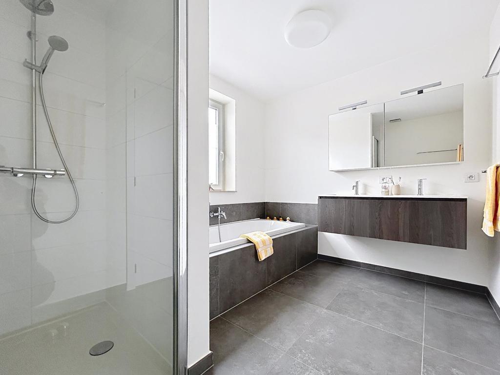 Op de eerste verdieping bevinden zich 3 slaapkamers, een afzonderlijk toilet, een eerste badkamer (douche, ligbad en dubbel lavabomeubel), een ruime was-/bergplaats en een vaste trap naar de tweede verdieping. Daar is een 4de slaapkamer, een doorloopdressing en een tweede badkamer (douche, toilet en lavabomeubel) ingericht.