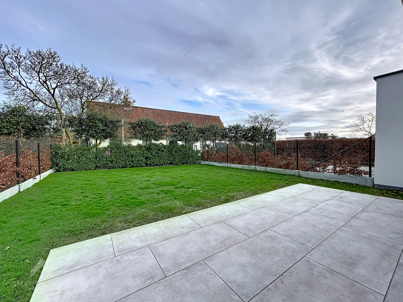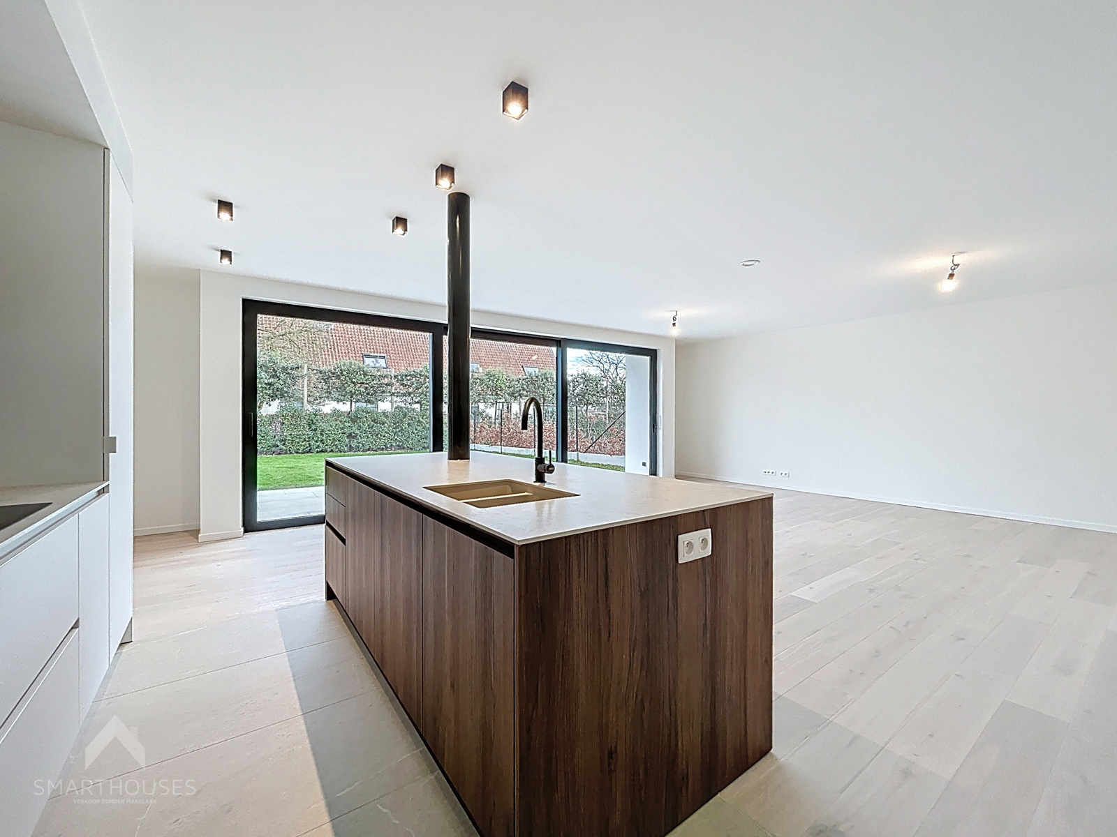 Zeer energiezuinige (BEN) nieuwbouwwoning op een interessante locatie bestaande uit een inkomhal met gastentoilet, lichtrijke leefruimte met eet-en zithoek, een volledig uitgeruste open keuken met eiland, praktische was/bergplaats, bureel/slaapkamer en een onderhoudsvriendelijke tuin met groot terras.