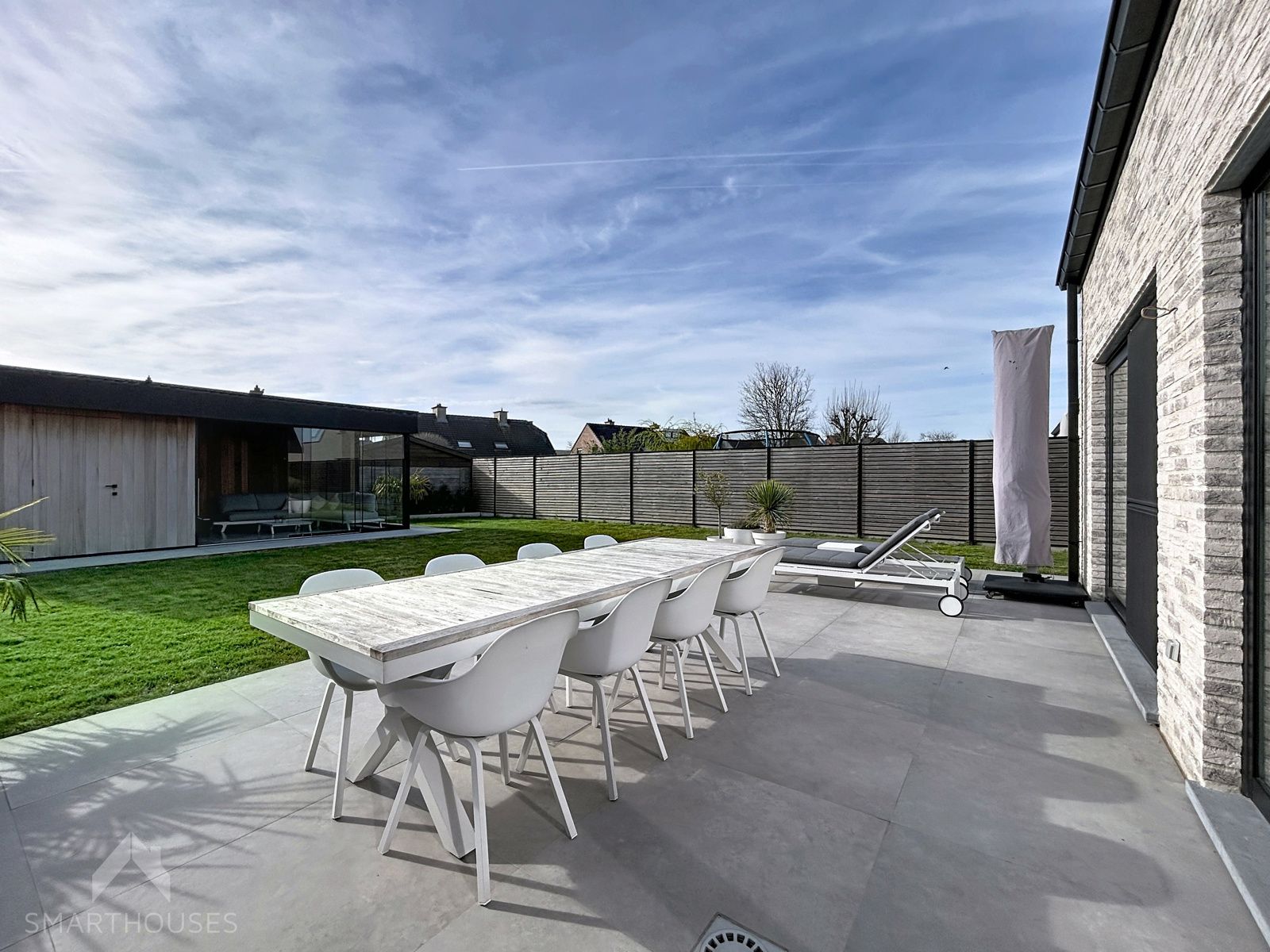 Energiezuinige en volledig afgewerkte halfopen bebouwing op een fantastische locatie bestaande uit een inkomhal met ingemaakte vestiairekast en gastentoilet, lichtrijke leefruimte (parket) met eet-en zithoek, volledig uitgeruste open keuken, garage met wasplaats en een zuid gerichte tuin met aangelegd terras en tuinberging + lounge/tuinkamer. Op het verdiep is er een nachthal met afzonderlijk toilet, 3 slaapkamers, ingerichte badkamer (inloopdouche, lavabomeubel en ligbad) en een trapluik naar de geïsoleerde bergzolder.