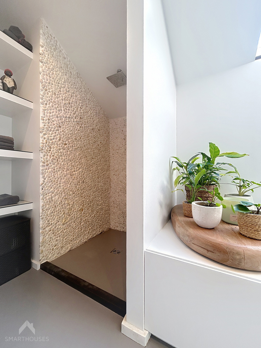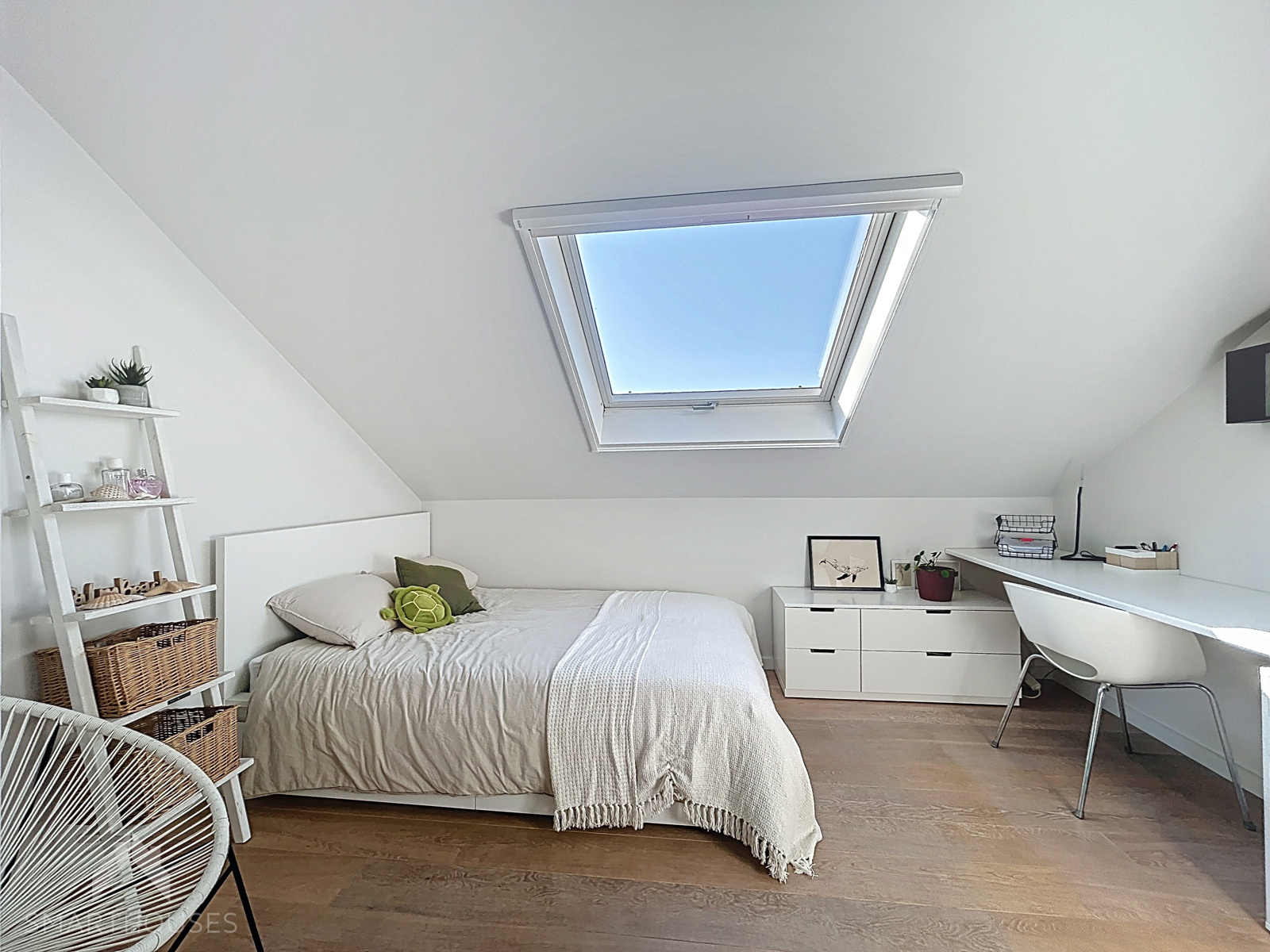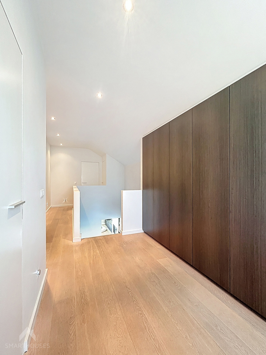 Op het verdiep zijn 2 slaapkamers, nachthal met ingemaakte kasten en toilet, een master bedroom met doorloopdressing en prachtige badkamer (inloopdouche, ligbad en lavabomeubel) en een bergzolder.